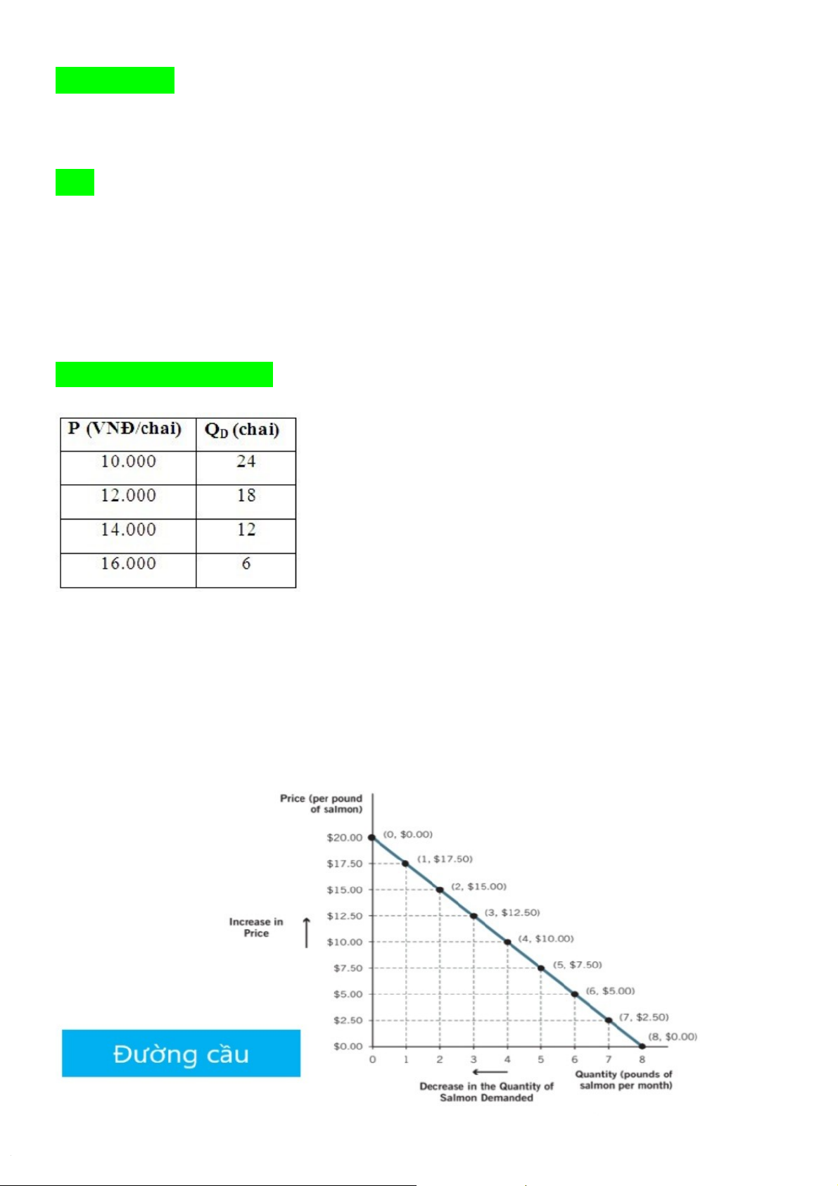 năng mua tại một mức giá nhất định, trong khoảng thời gian nhất định, các yếu tố khác không đổi. CÁCH BIỂU THỊ CẦU - Biểu cầu: - Hàm cầu Qd = f(P) Trong đó: QD: Lượng cầu P: Giá cả