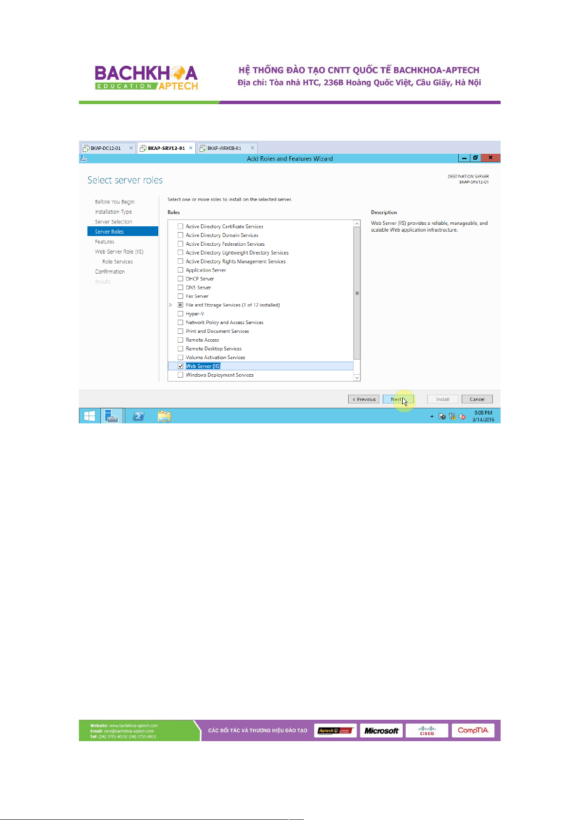 Máy BKAP-SRV12-01 cài đặt và cấu hình Web Server (IIS).
