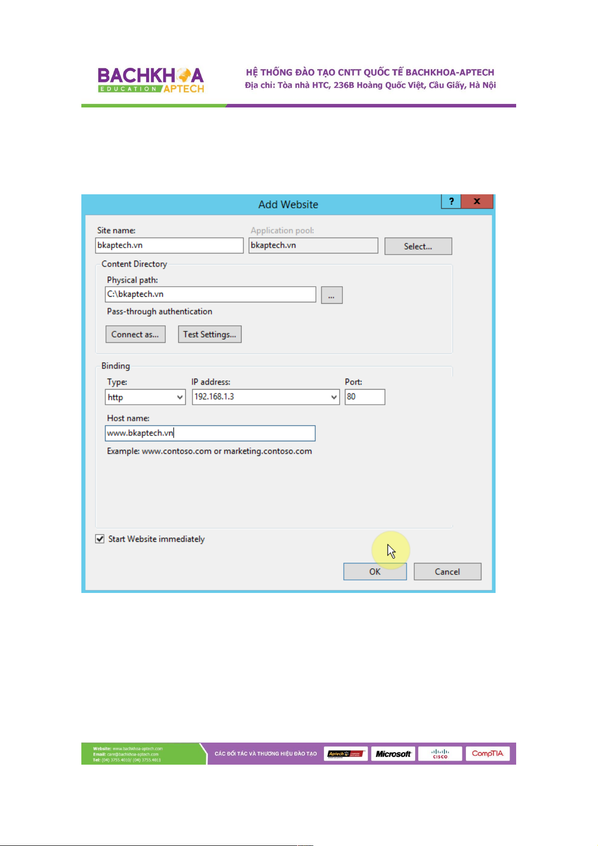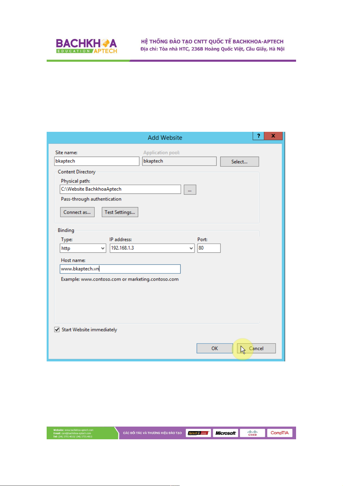Physical path : browse đến thư mục Website BachkhoaAptech.