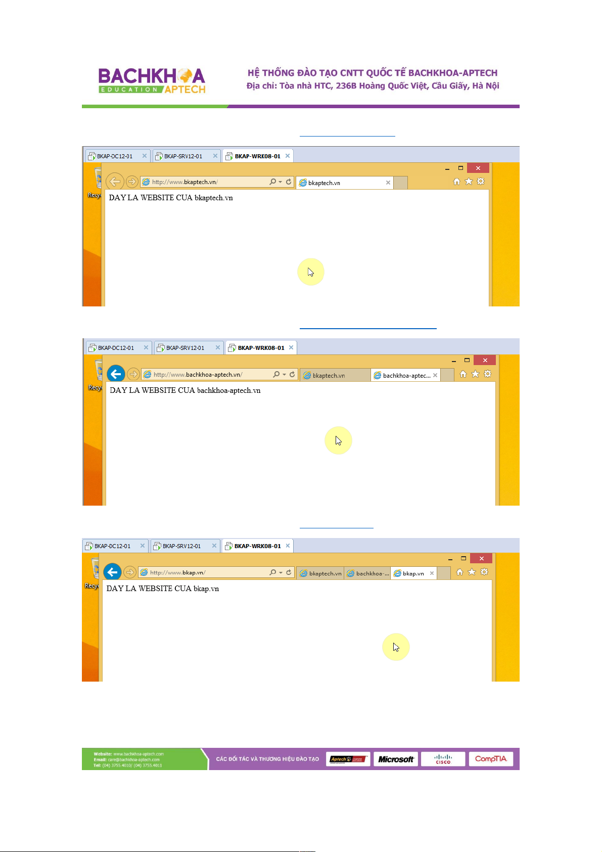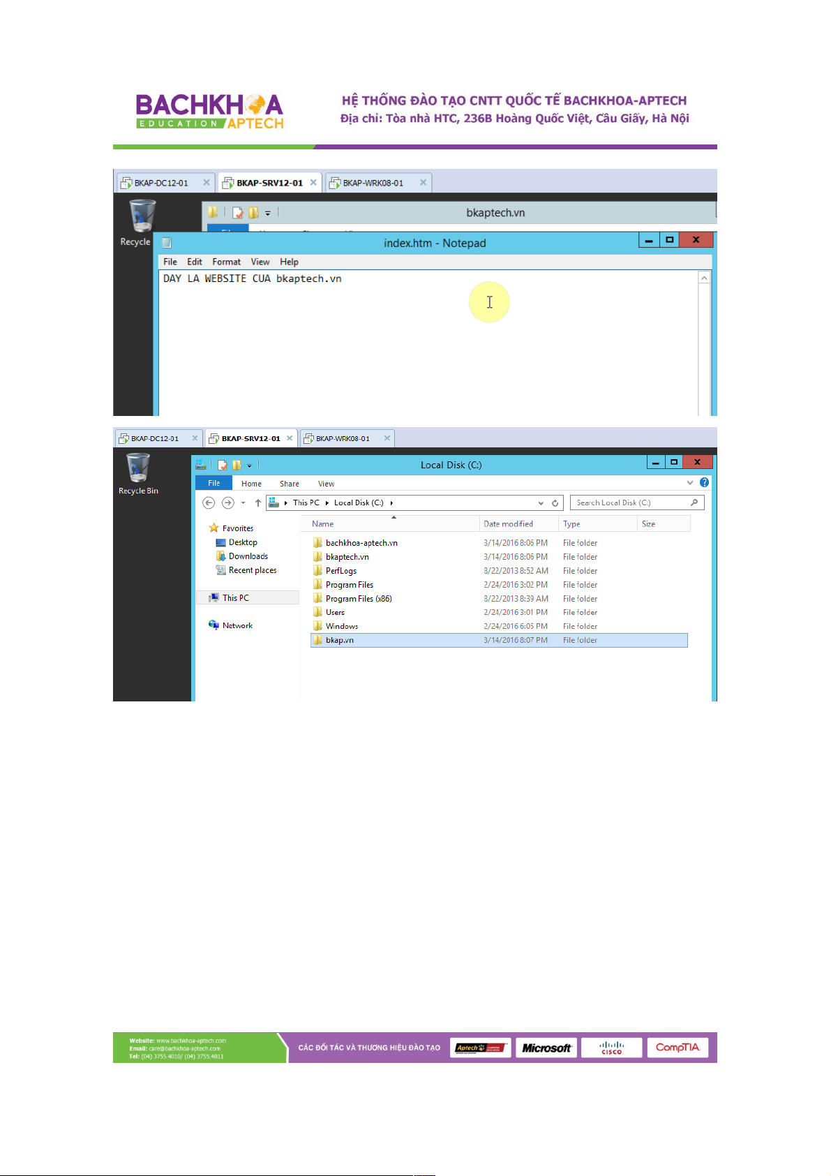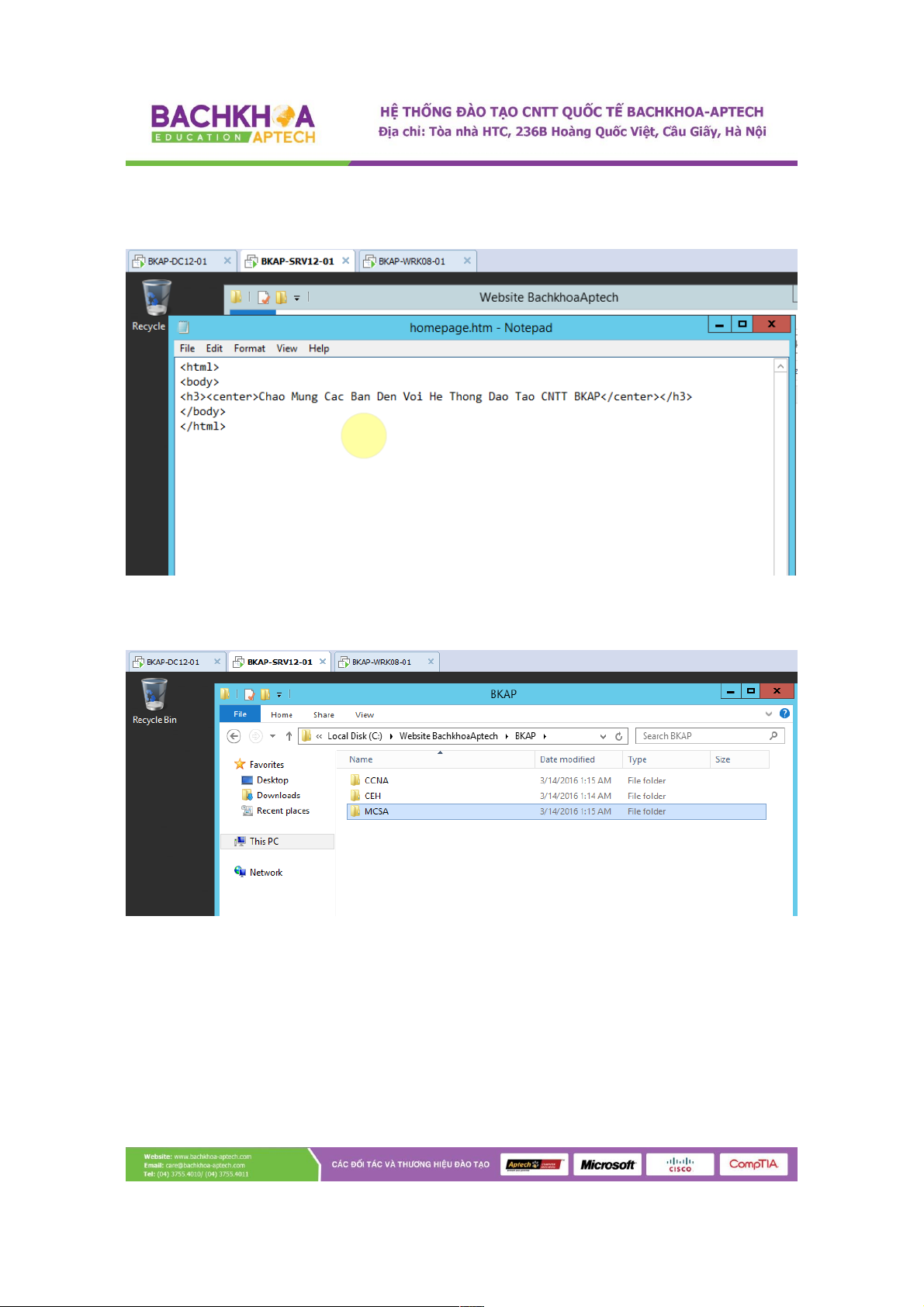 Chuyển sang máy BKAP-SRV12-01, tạo dữ liệu và nội dung cho 3 website lưu trên ổ C. 44 45