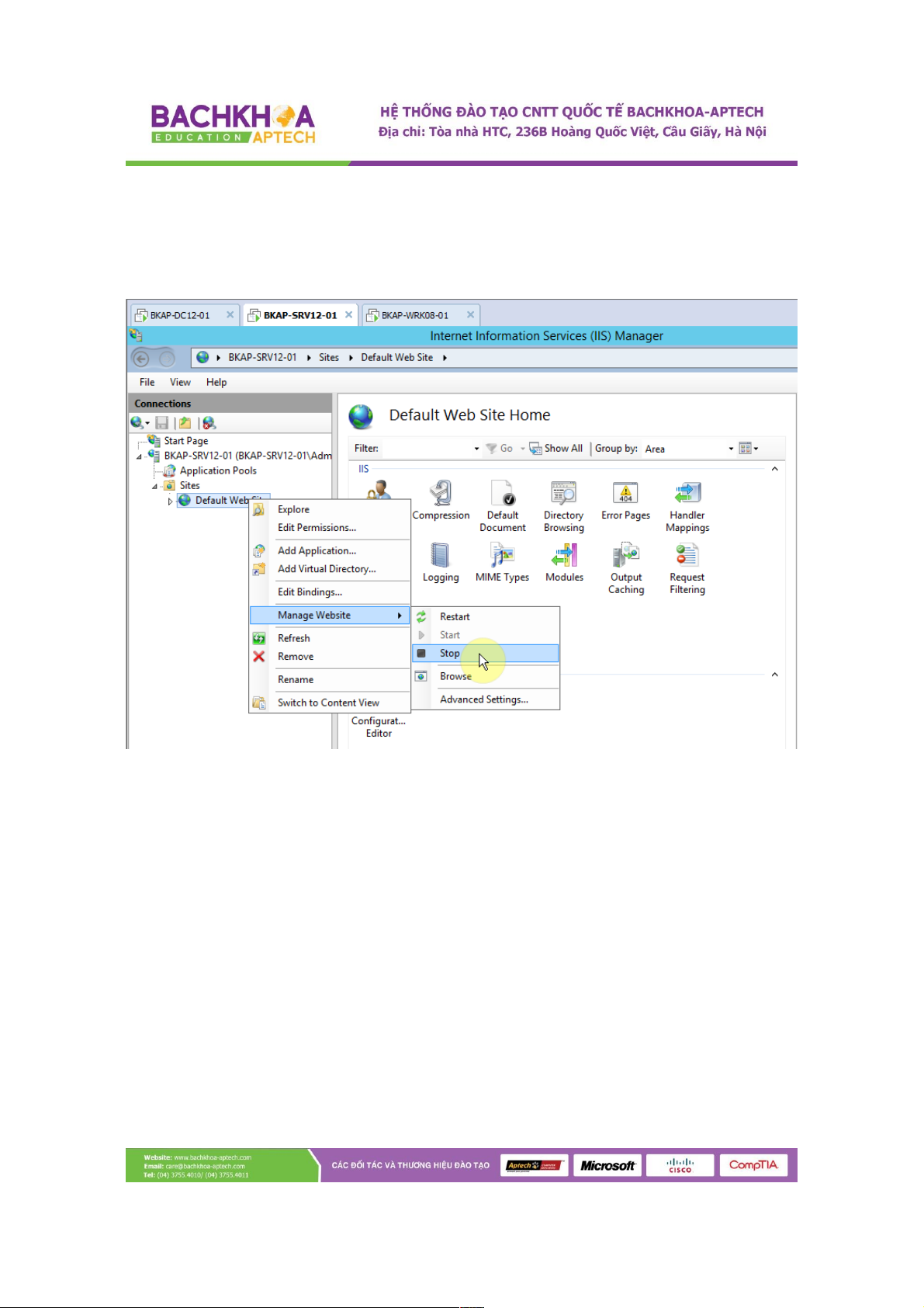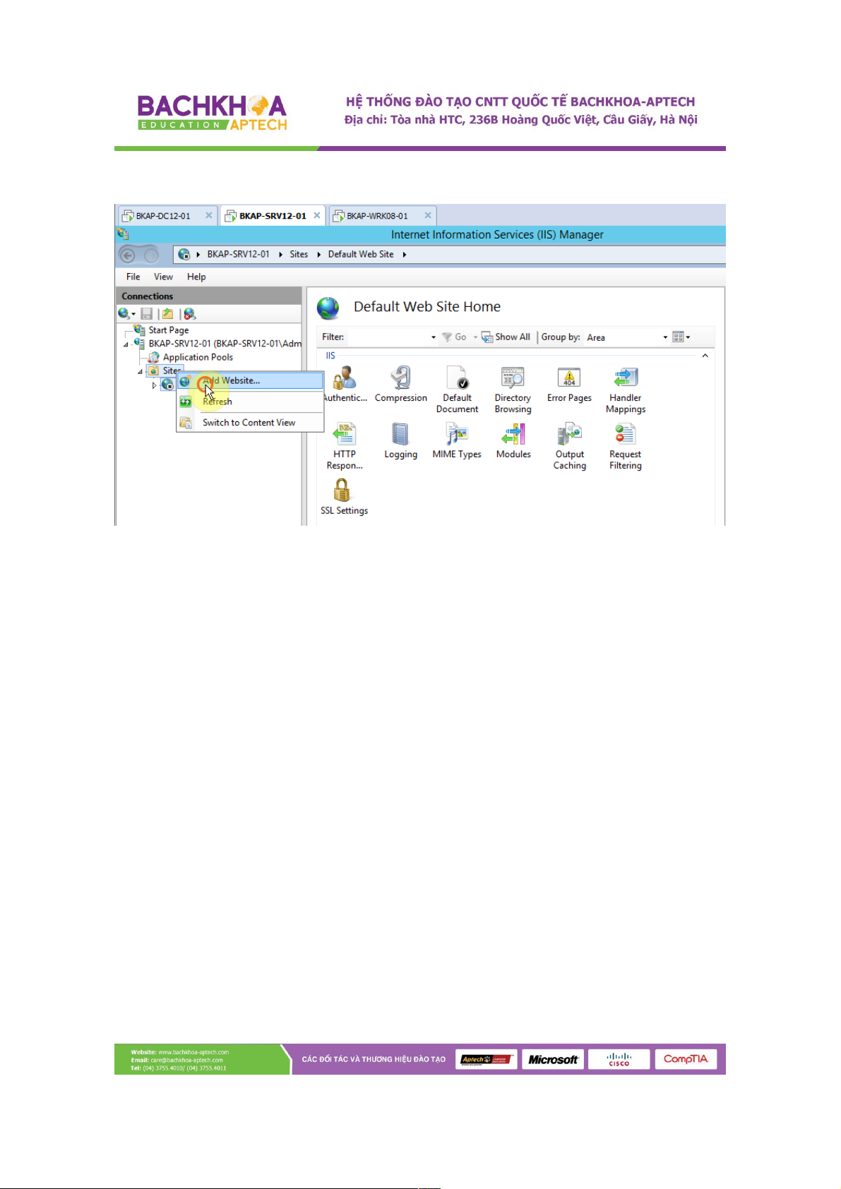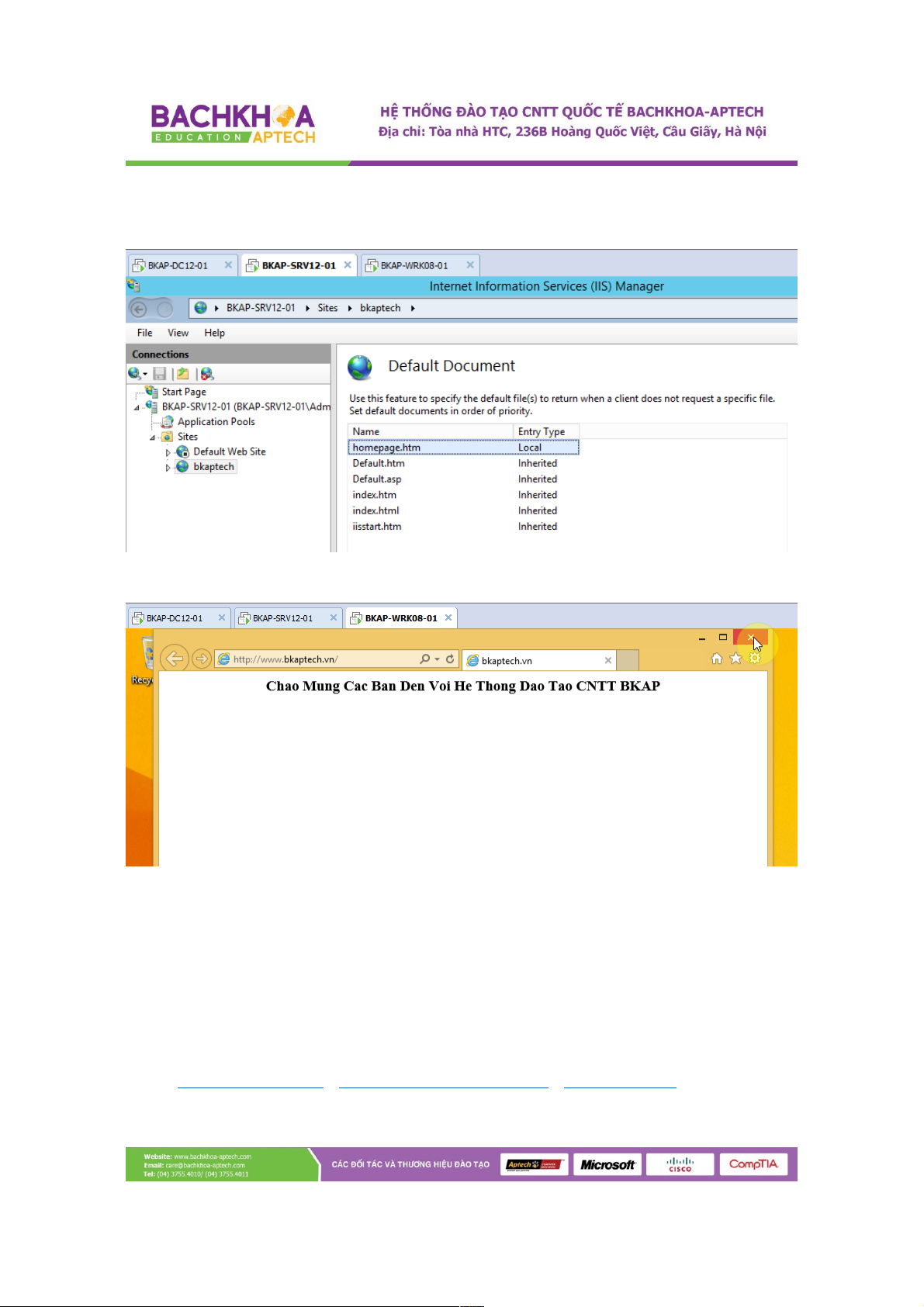 Chuyển sang máy BKAP-SRV12-01, thực hiện cài đặt và cấu hinh Web Server (IIS).