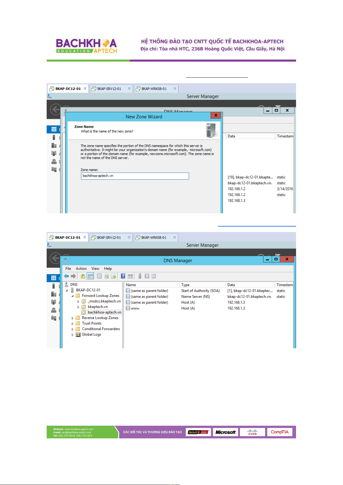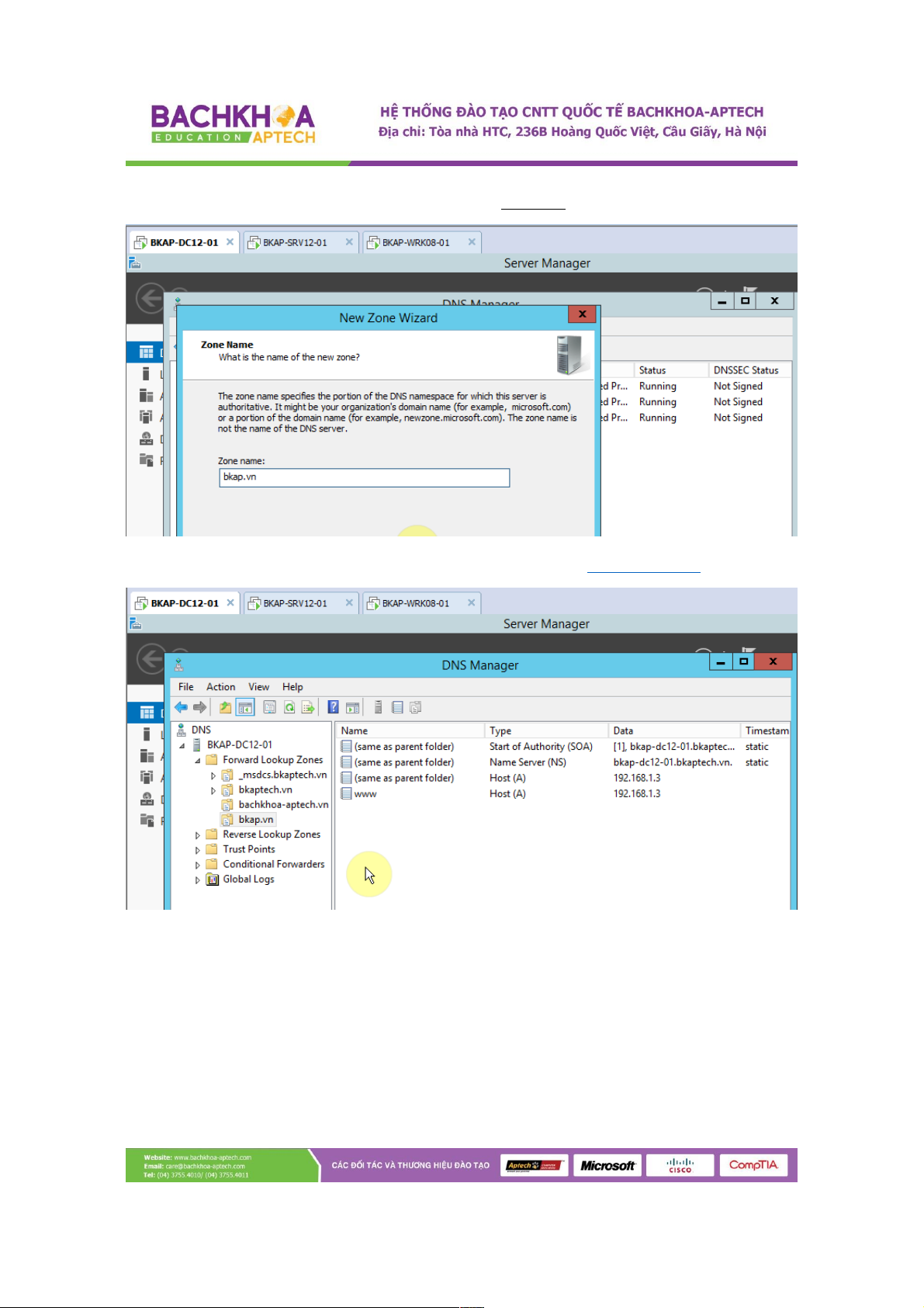Máy BKAP-DC12-01 làm Domain Controller cài đặt DNS Server với tên bkaptech.vn.