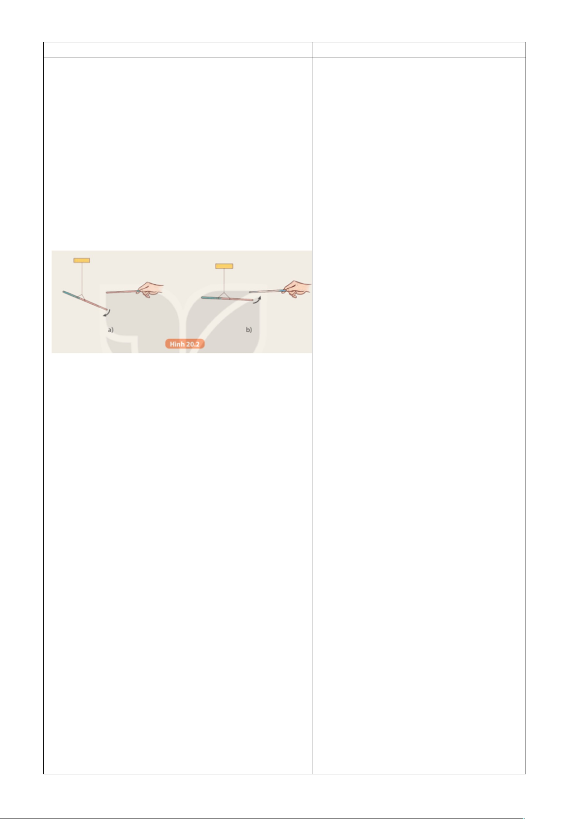 tượng xảy ra và rút ra nhận xét về tính chất các đũa nhựa đẩy nhau như ở Hình 20.2a.