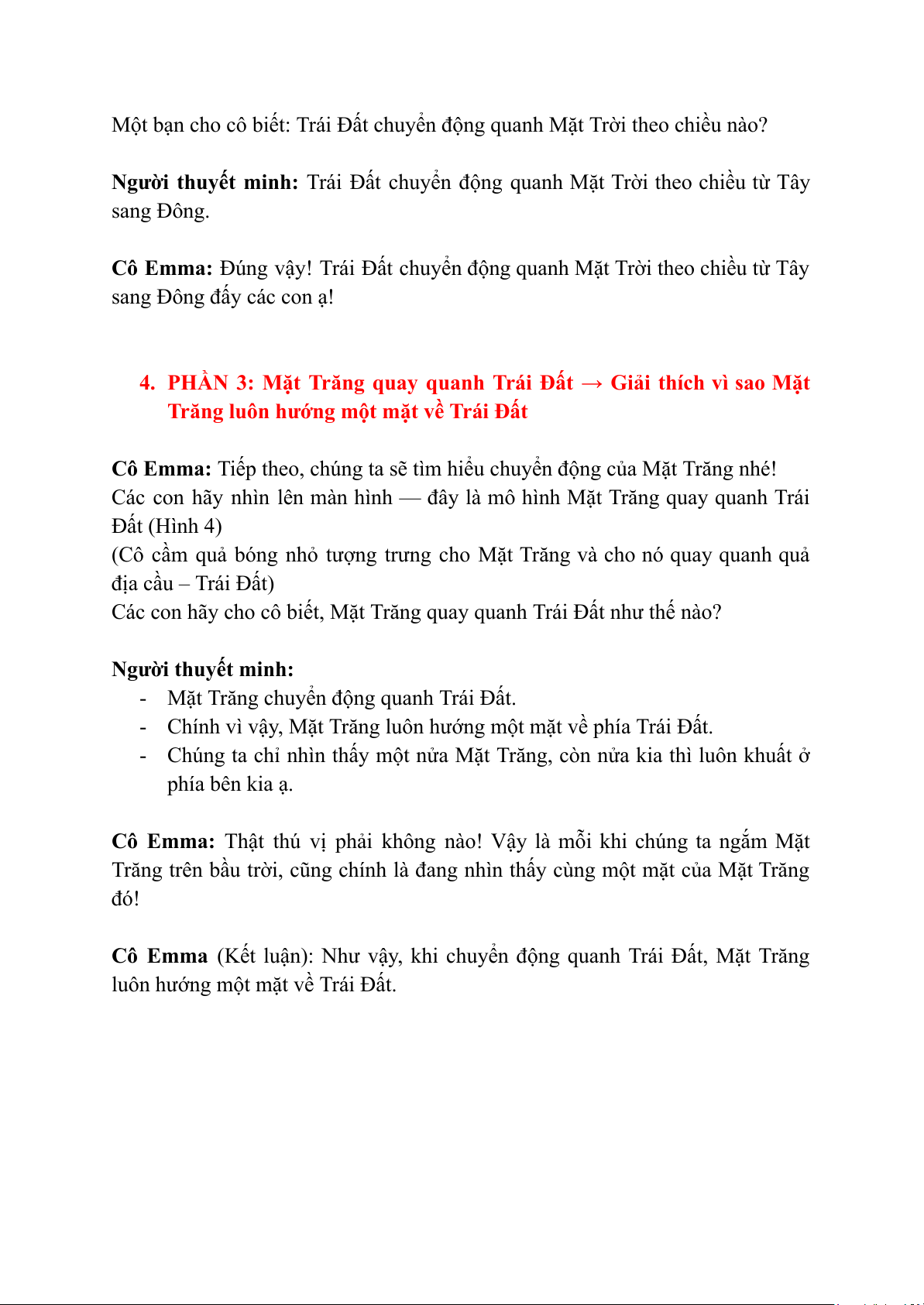 Cô Emma (Kết luận): Như vậy, khi chuyển động quanh Trái Đất, Mặt Trăng