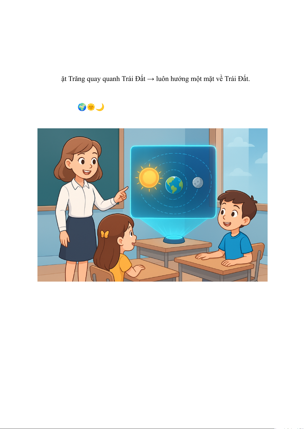 Cô Emma: Tiếp theo, chúng ta sẽ tìm hiểu chuyển động của Mặt Trăng nhé!
