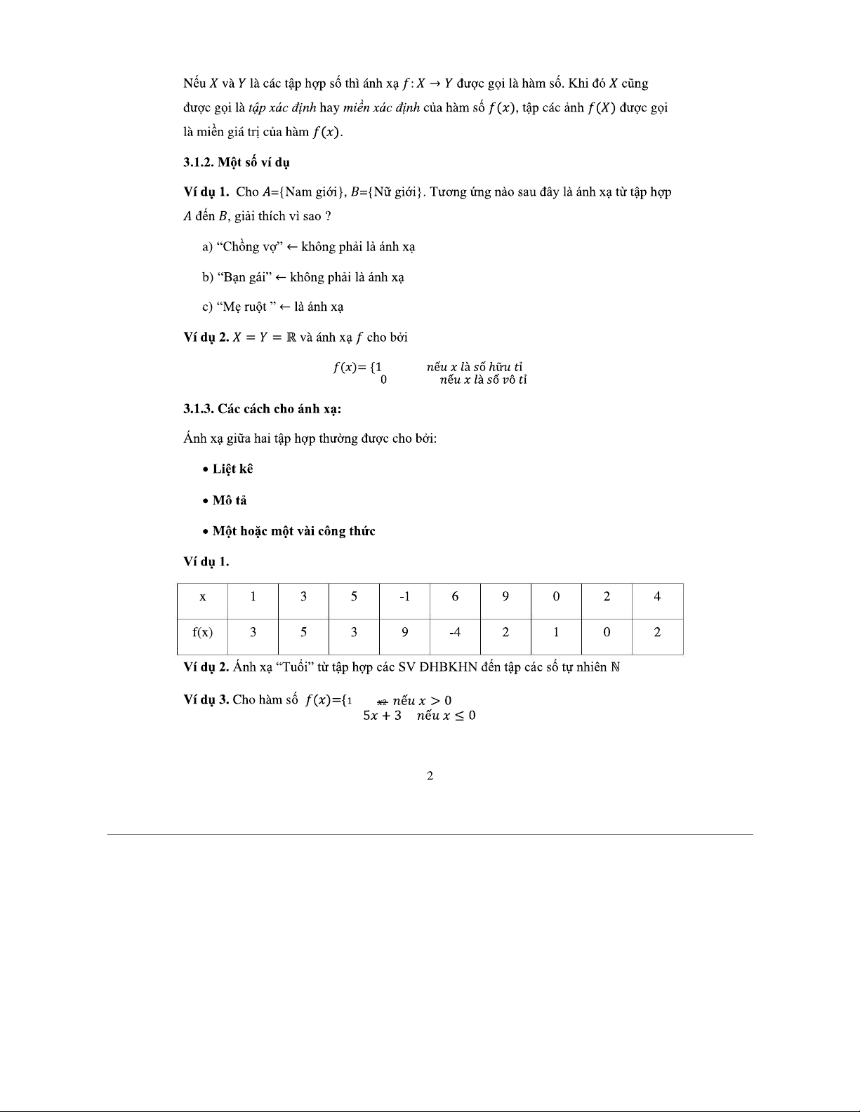 Bài 3 - Ánh xạ trong Toán học (Tuần 2) - Ghi chú và ví dụ