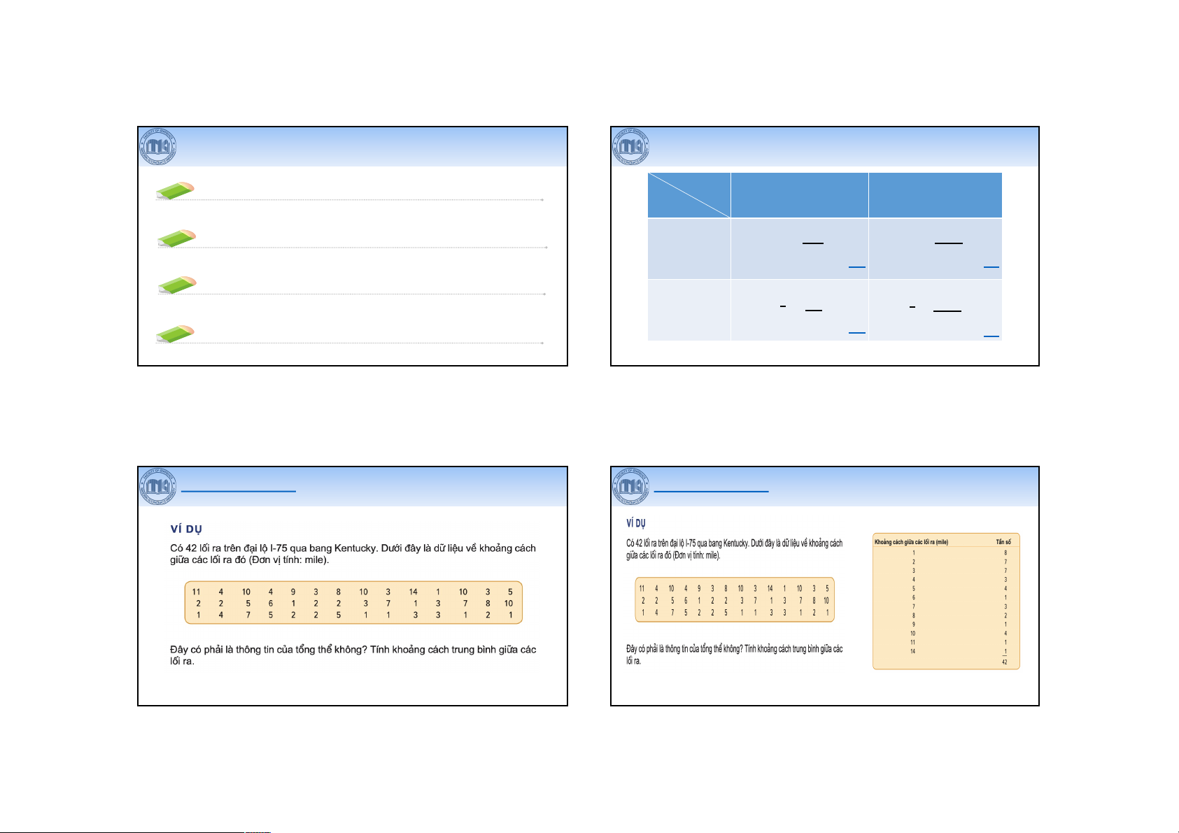 • Chỉ áp dụng cho dữ liệu được đo bằng thang đo khoảng hoặc thang đo 𝐺𝑀 = ) 𝑥