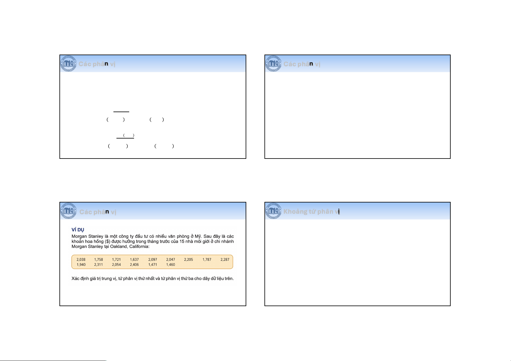 • Ít bị ảnh hưởng bởi giá trị đột xuất, do bỏ qua 25% nhỏ nhất và 25% lớn nhất. 39 40 Page 10
