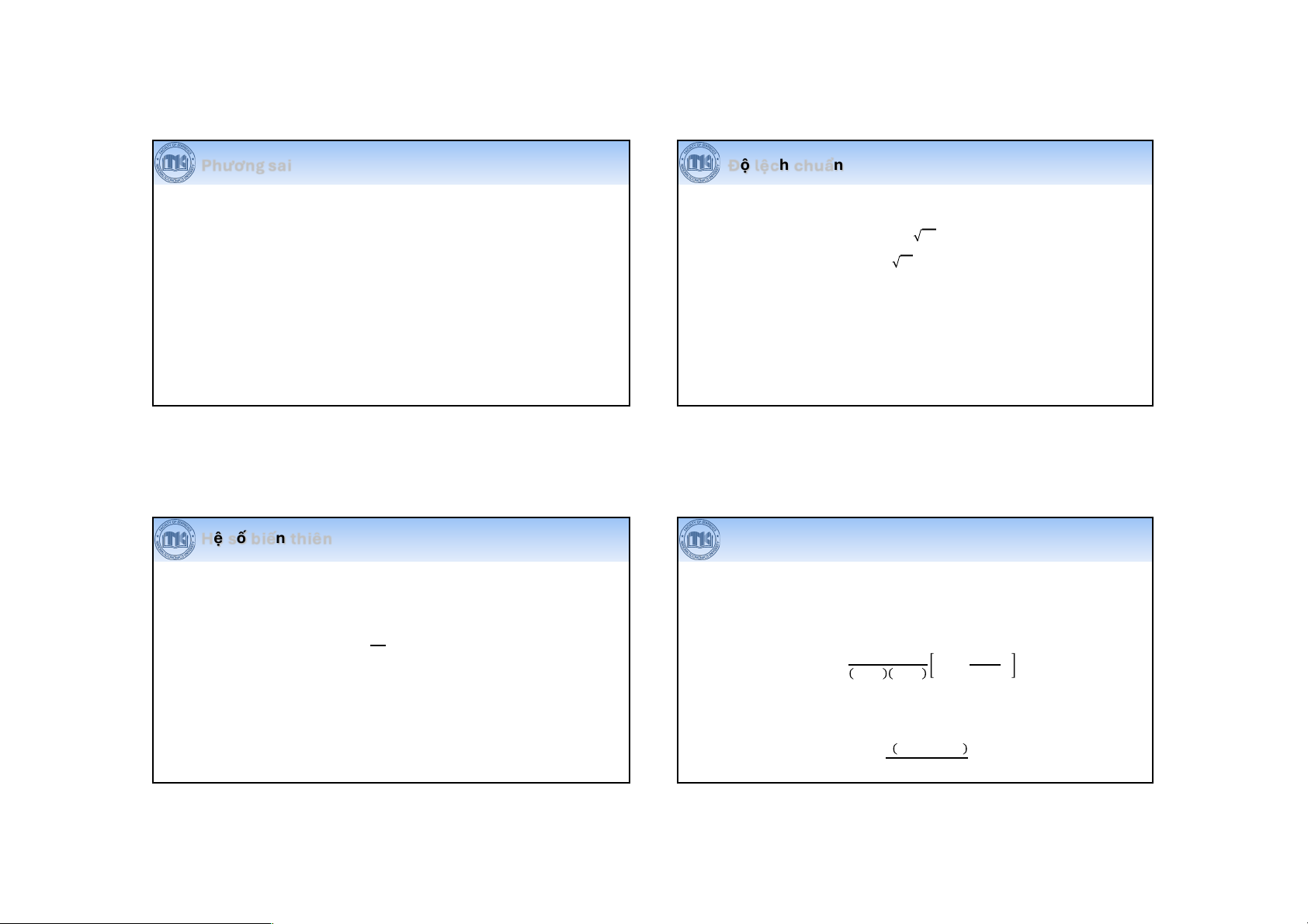 • Trong thực tế thường dùng Độ lệch chuẩn (SD) – căn bậc hai của phương
