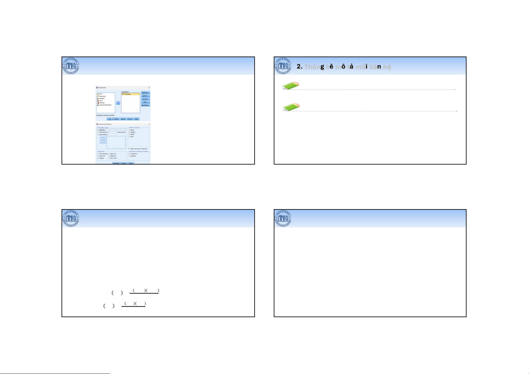 • Chọn Analyze > Descriptive Statistics > Frequencies… Hiệp phương sai