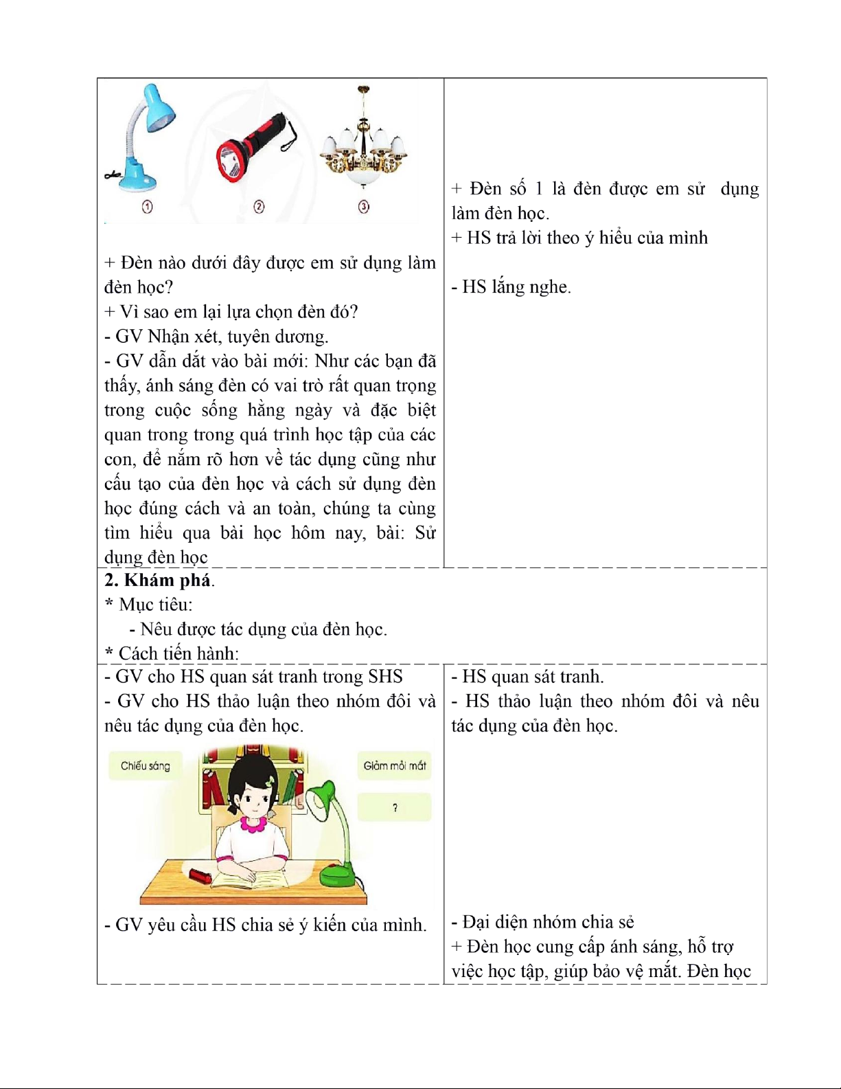 - Nhận biết và phòng tránh được những tình huống mất an toàn khi sử dụng đèn học. 2. Năng lực chung.