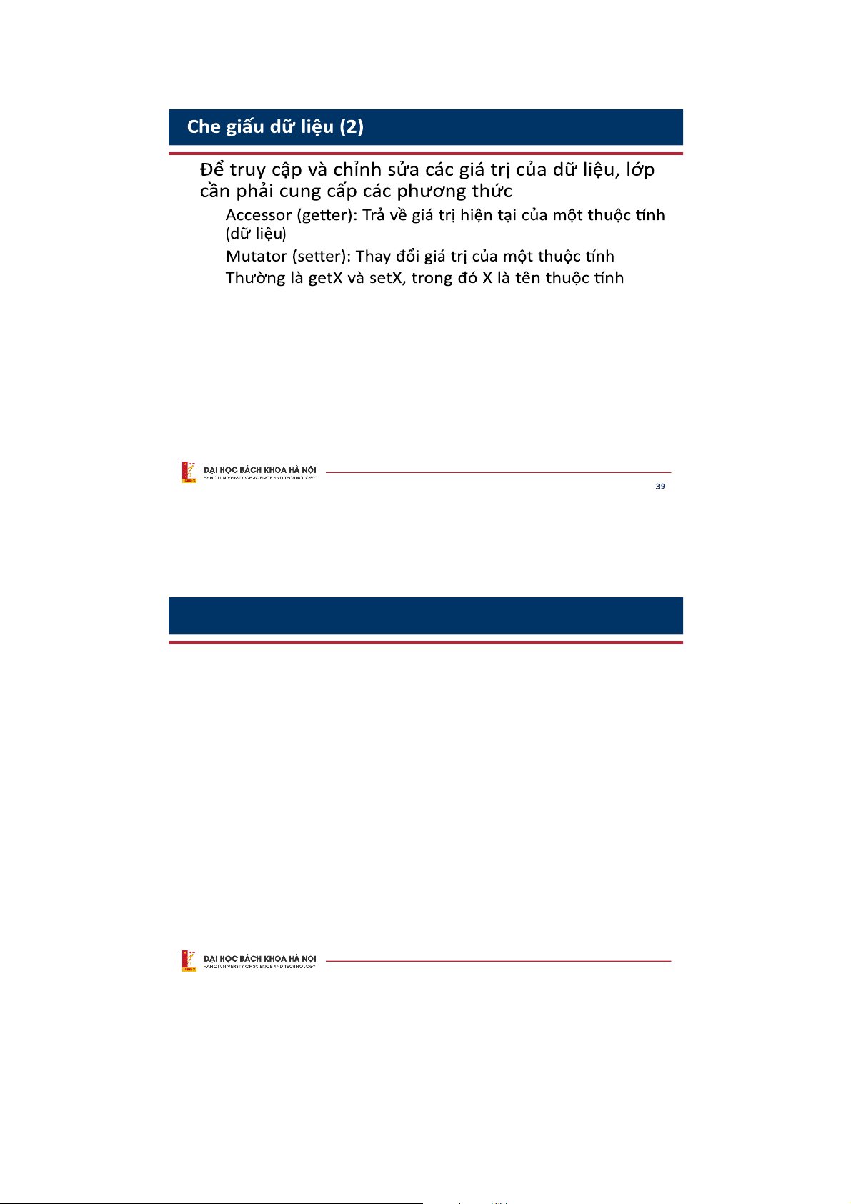 này phải thông qua các phương thức của lớp có phạm vi truy cập public. 38 38 • • • • 39 Phương thức Get
