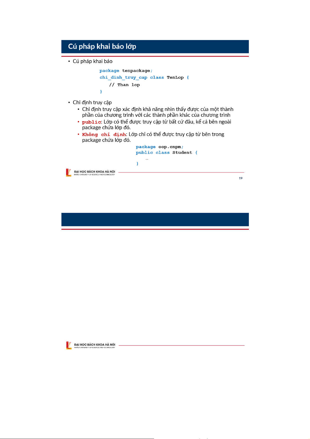 ▪ Danhsáchcácphươngthức String owner; double balance; Khaibáothuộctính Khaibáophươngthức 18 19 Package - gói