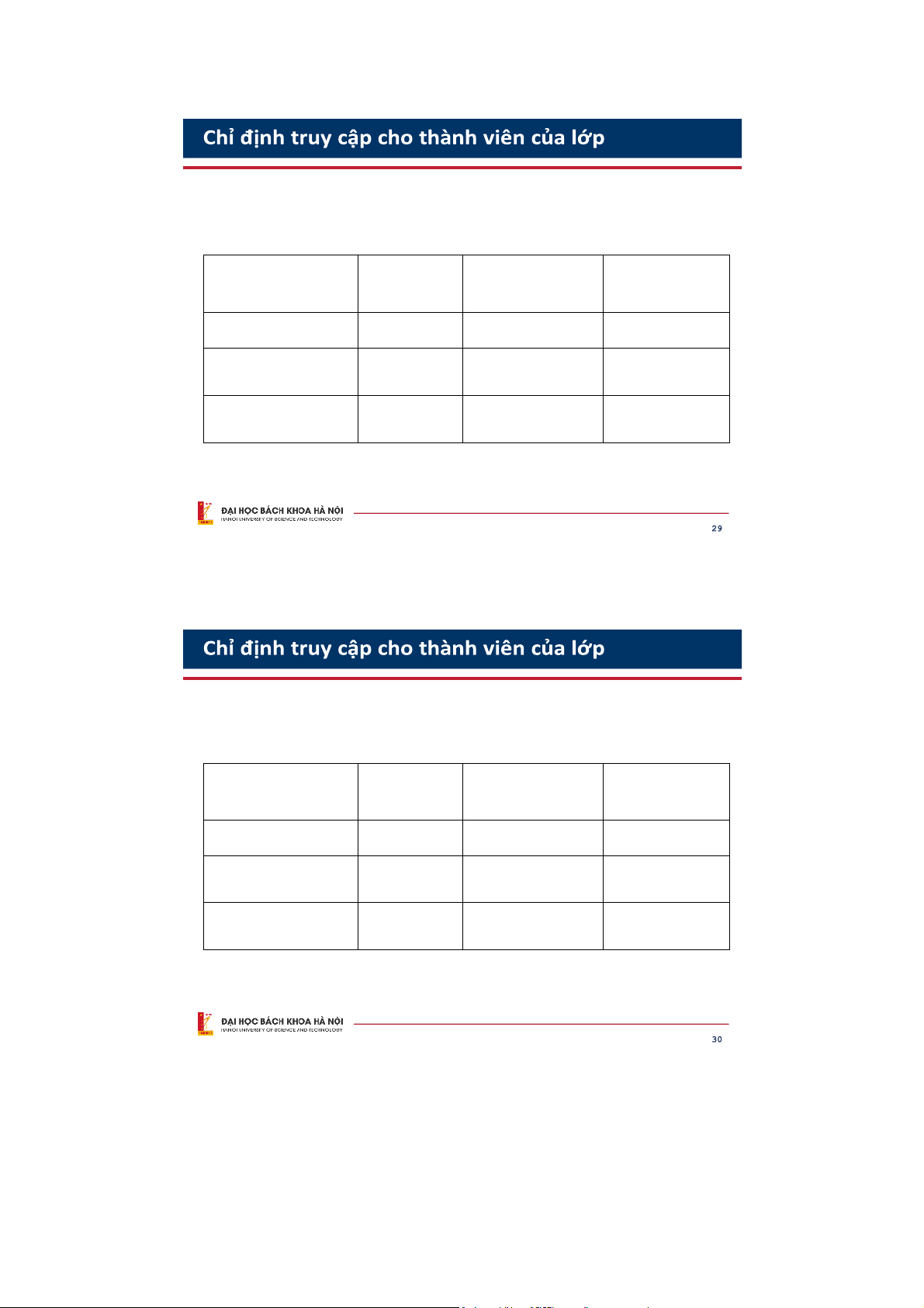• protected: Thuộc snh hoặc phương thức chỉ có thể được truy cập