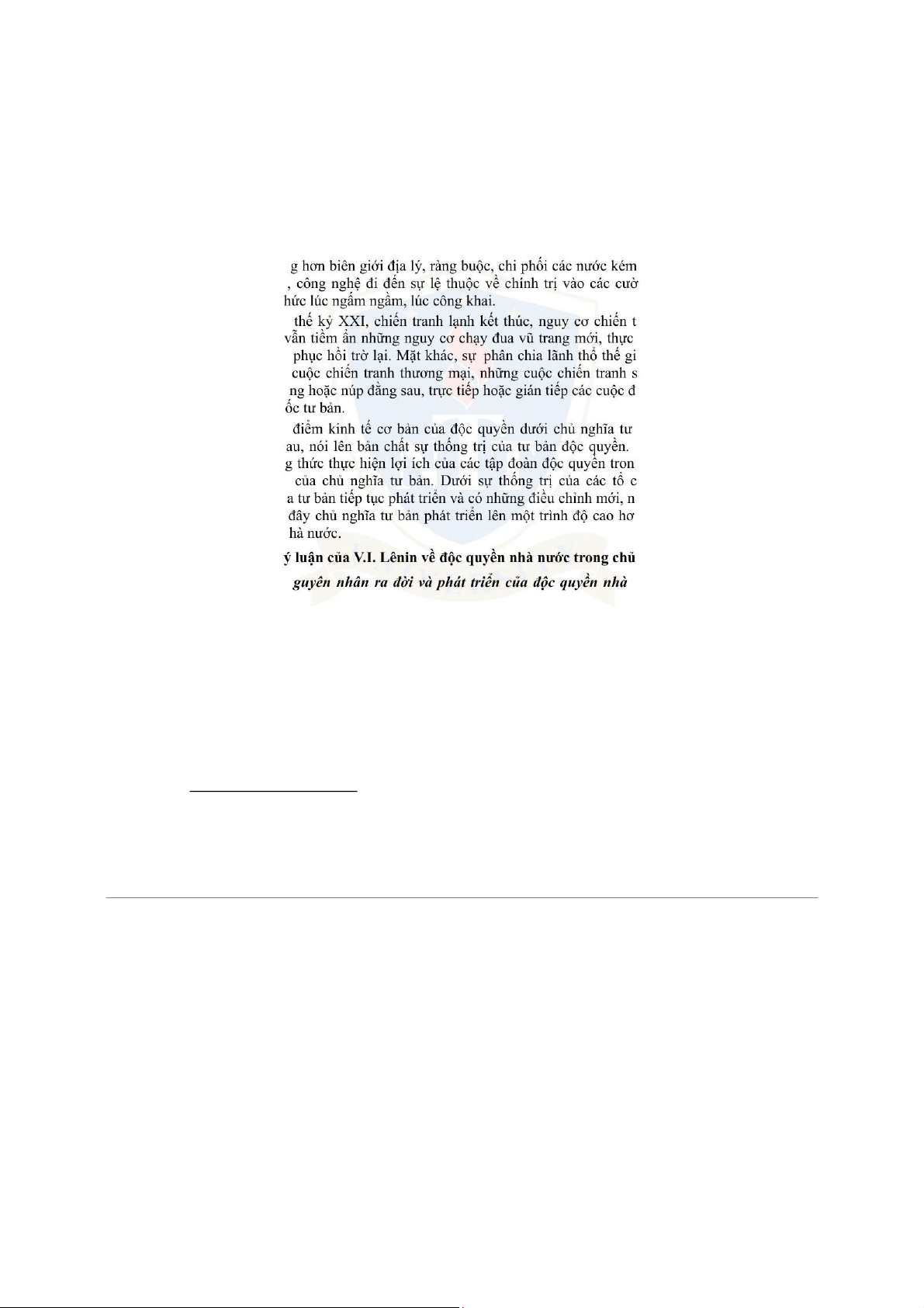 nghĩa tư bản chuyển sang một giai đoạn mới cao hơn - giai đoạn độc quyền. Theo V.I.Lênin, độc quyền trong chủ nghĩa tư