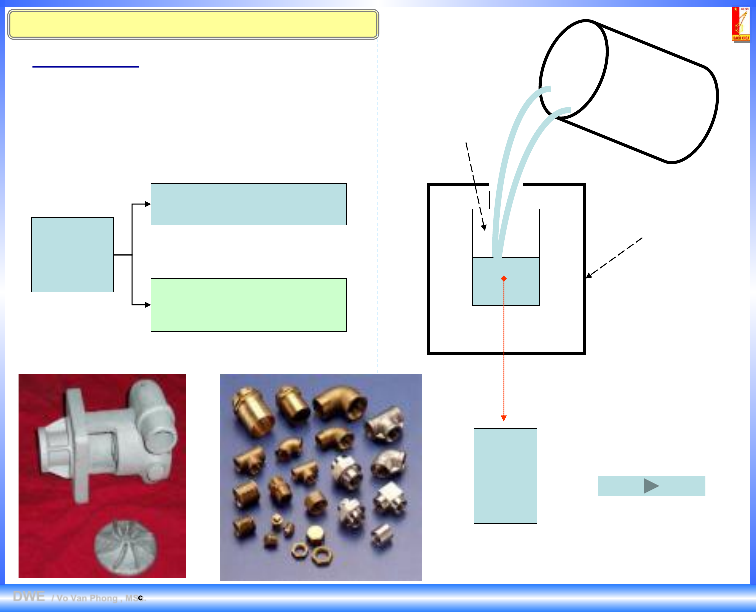 đúc) → Đông đặc → Vật đúc (hình dạng giống như Lòng khuôn lòng khuôn đúc) Chi tiết đúc (Sử dụng ngay) Khuôn đúc Vật đúc Phôi đúc
