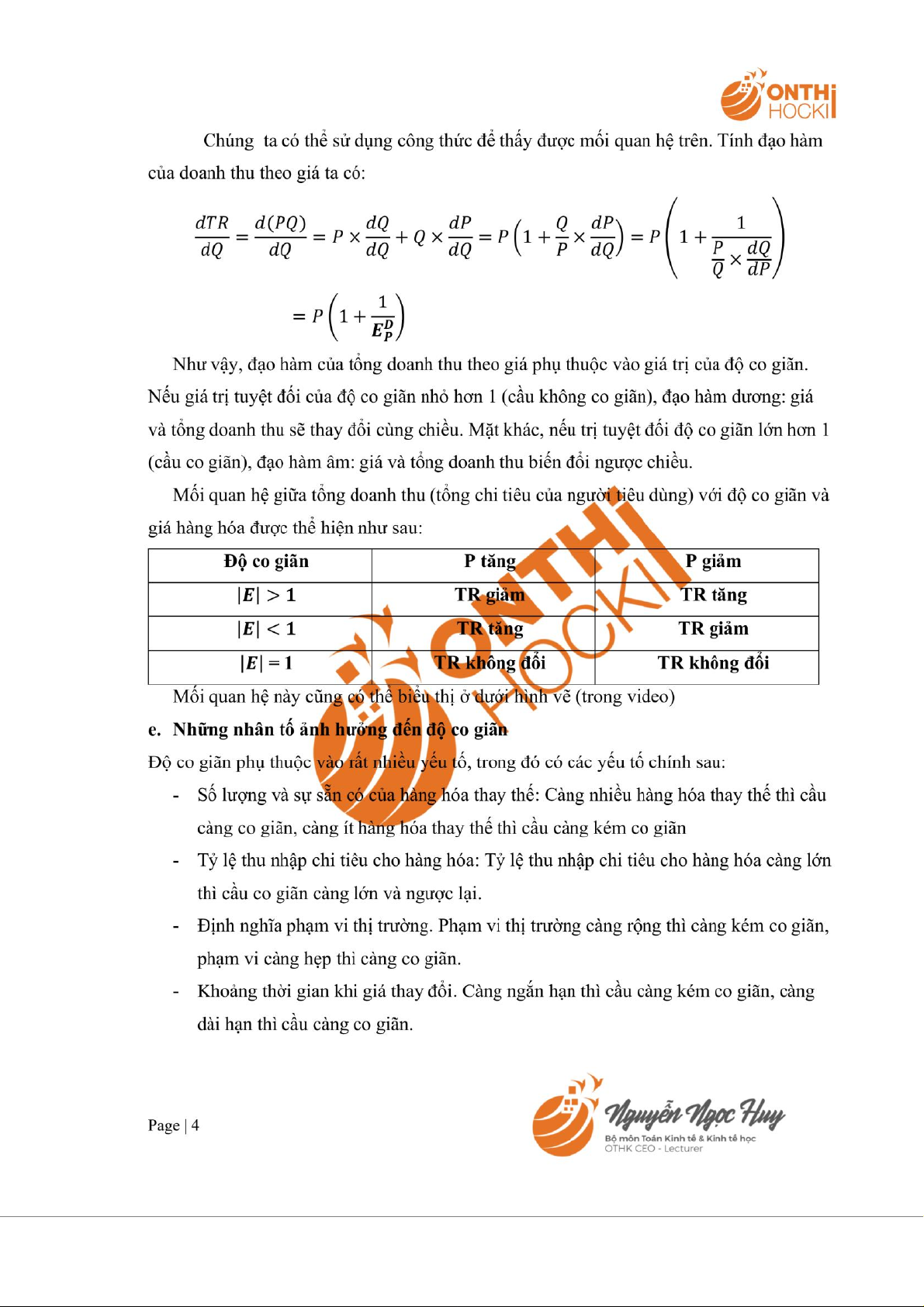 Bài 5: Độ Co Giãn Micro môn Kinh tế vi mô | Trường Đại học Kinh Tế Quốc Dân