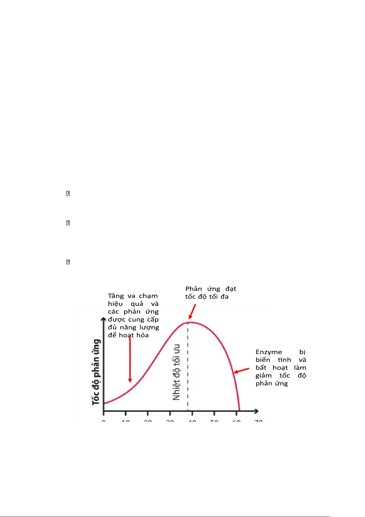 - Khi tăng nhiệt độ dần lên mức nhiệt độ tối ưu của enzyme, tốc độ phản ứng tăng và