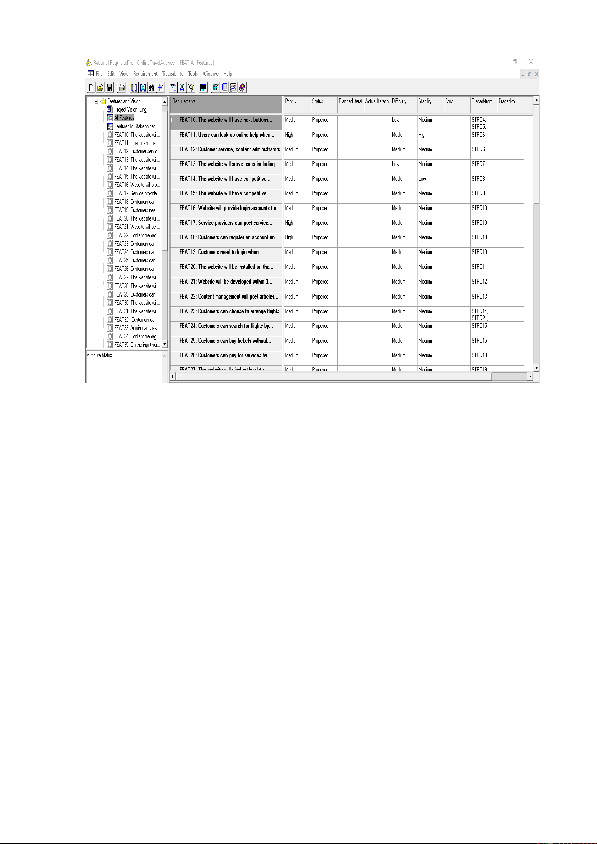 Hình 5.7 Các thuộc tính FEATs được quản lý trong dự án được tạo bởi Rational RequisitePro