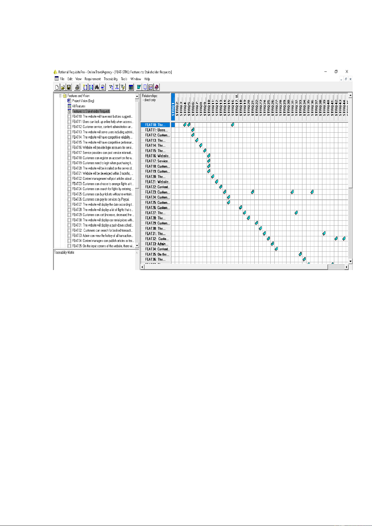 Hình 5.6 Quản lý FEATs trong dự án được tạo bởi Rational RequisitePro
