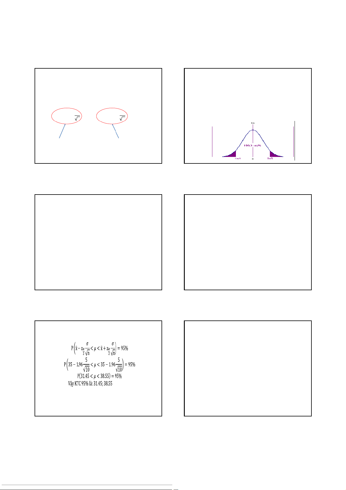 •KTC 95% củaμ: 𝑥 1.96 𝜇𝑥 1.96