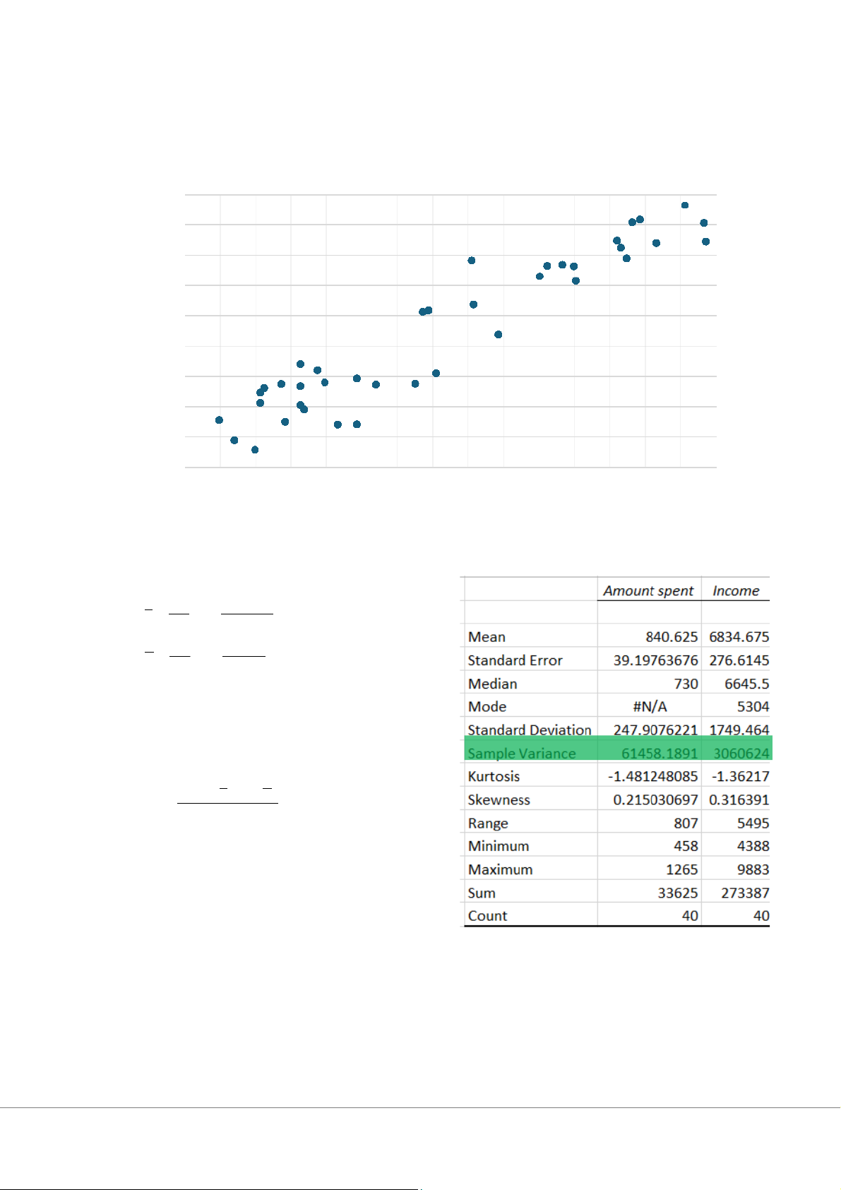 a) Vẽ biểu đồ phân tán : 1300 1200 1100 1000 900 800 Chi tiêu (y) 700 600 500 4004000 6000 8000 10000 Thu nhập 1 tháng (x)