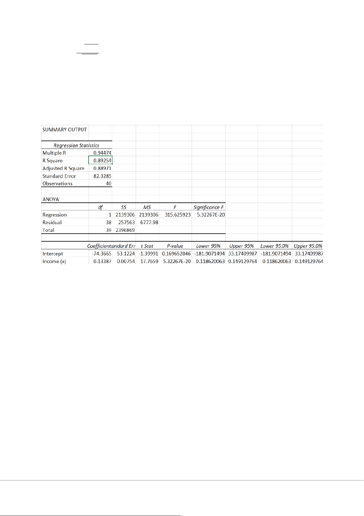 Bác bỏ H0 với mức ý nghĩa 0.05ðKết luận : Có mối liên hệ thuận giữa thu nhập hàng tháng và số tiền chi tiêu. Tài liệu giúp bạn tham khảo, ôn tập và đạt kết quả cao. Mời đọc đón xem!