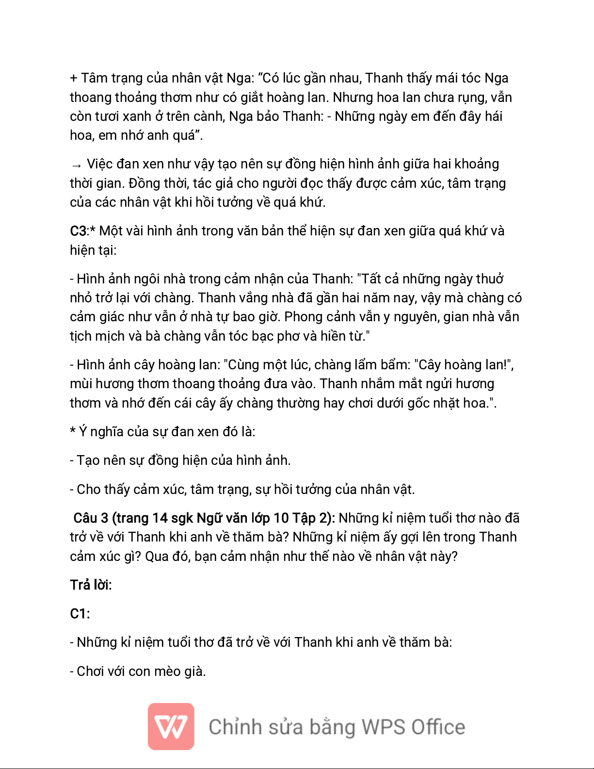 - Cho thấy cảm xúc, tâm trạng, sự hồi tưởng của nhân vật. C2: