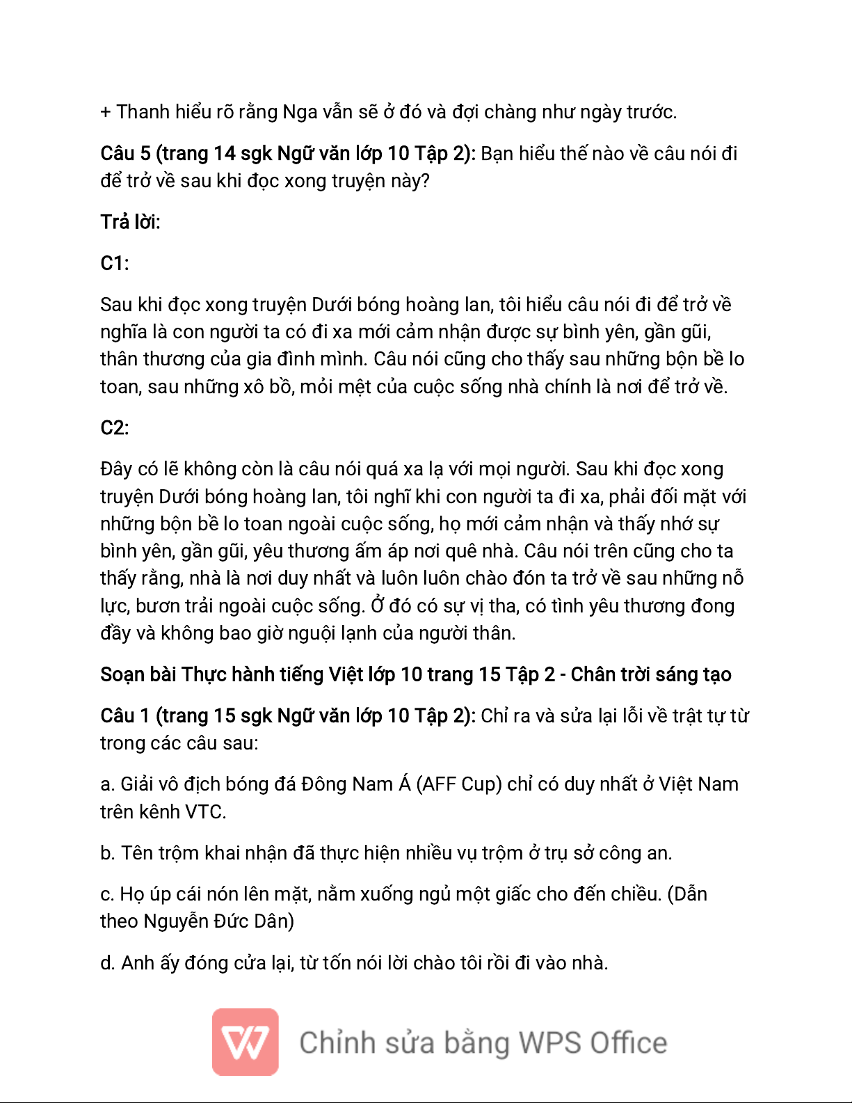 Soạn bài Thực hành tiếng Việt lớp 10 trang 15 Tập 2 - Chân trời sáng tạo