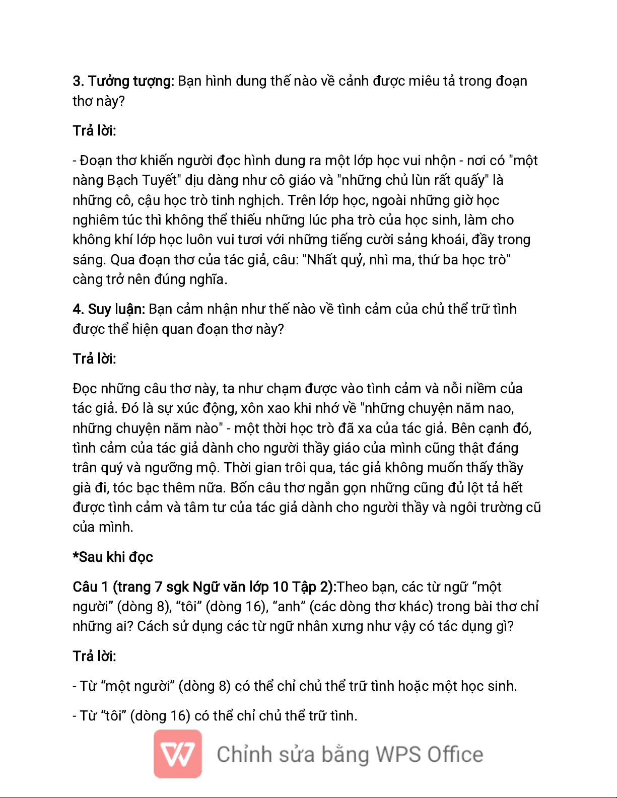 3. Tưởng tượng: Bạn hình dung thế nào về cảnh được miêu tả trong đoạn thơ này? Trả lời: