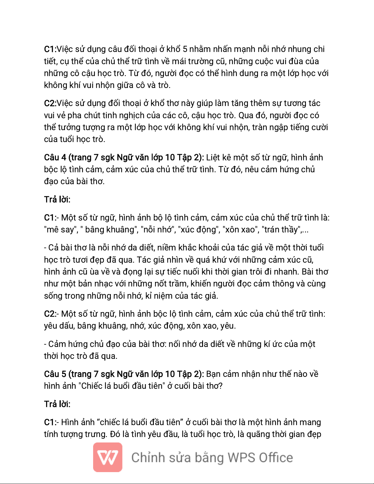 C2:Việc sử dụng đối thoại ở khổ thơ này giúp làm tăng thêm sự tương tác