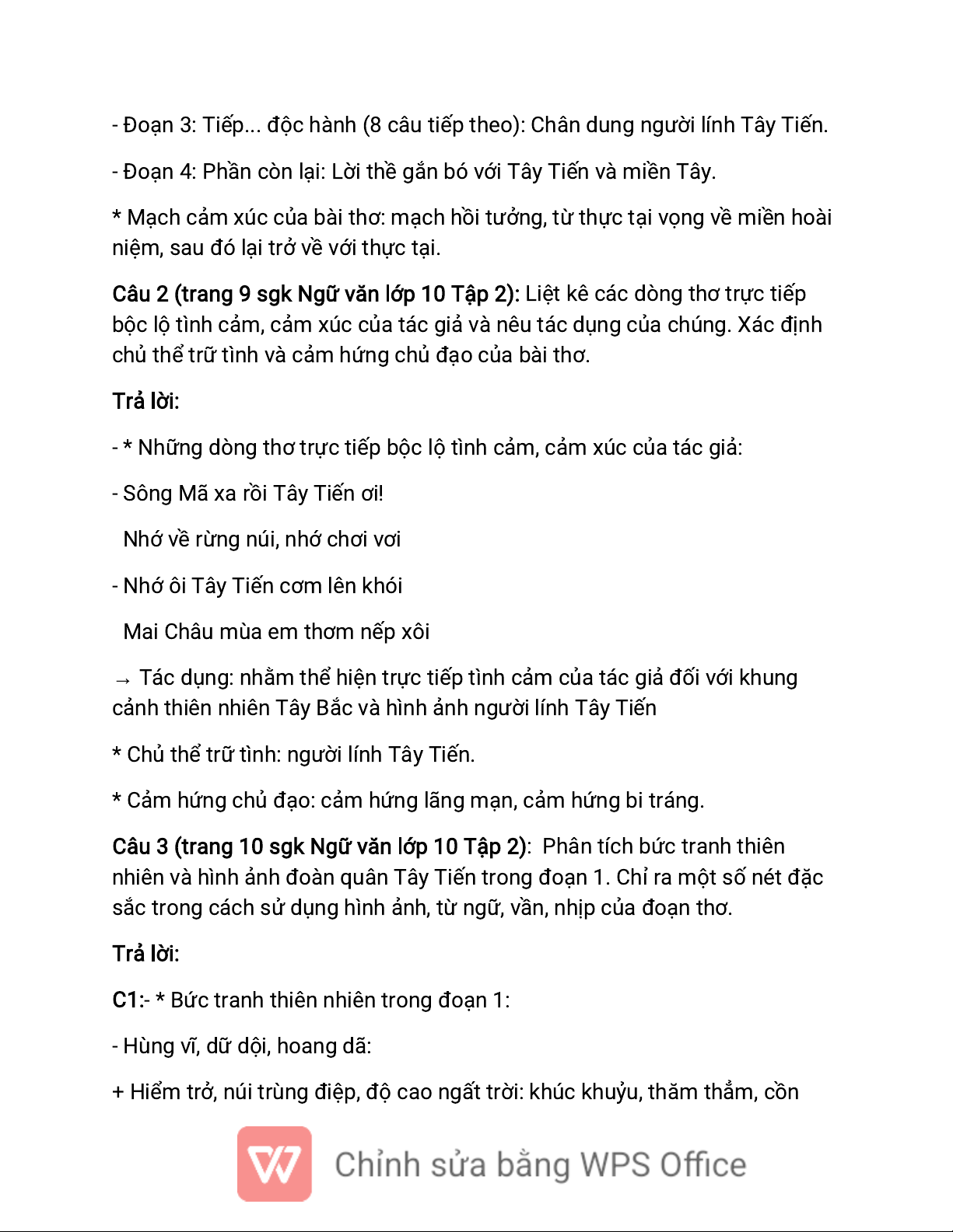 C1:- Một số từ ngữ, hình ảnh bộ lộ tình cảm, cảm xúc của chủ thể trữ tình là: