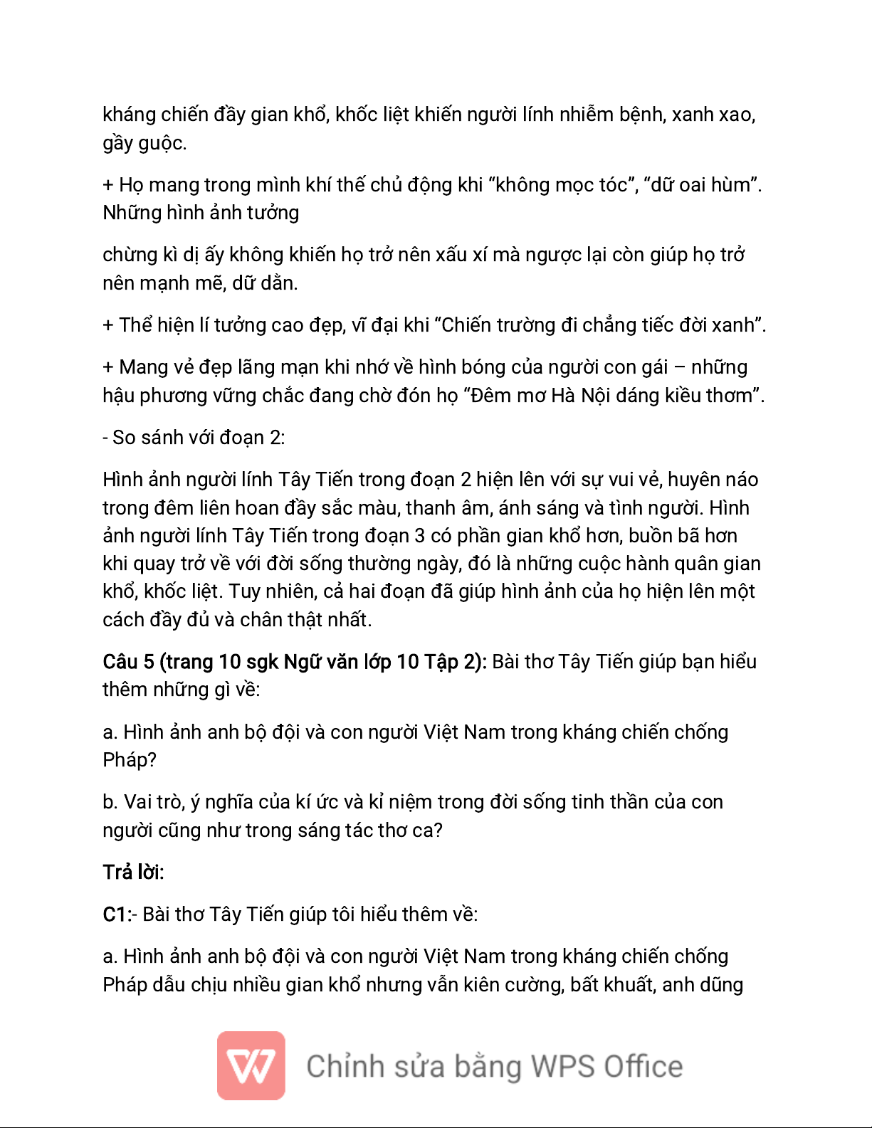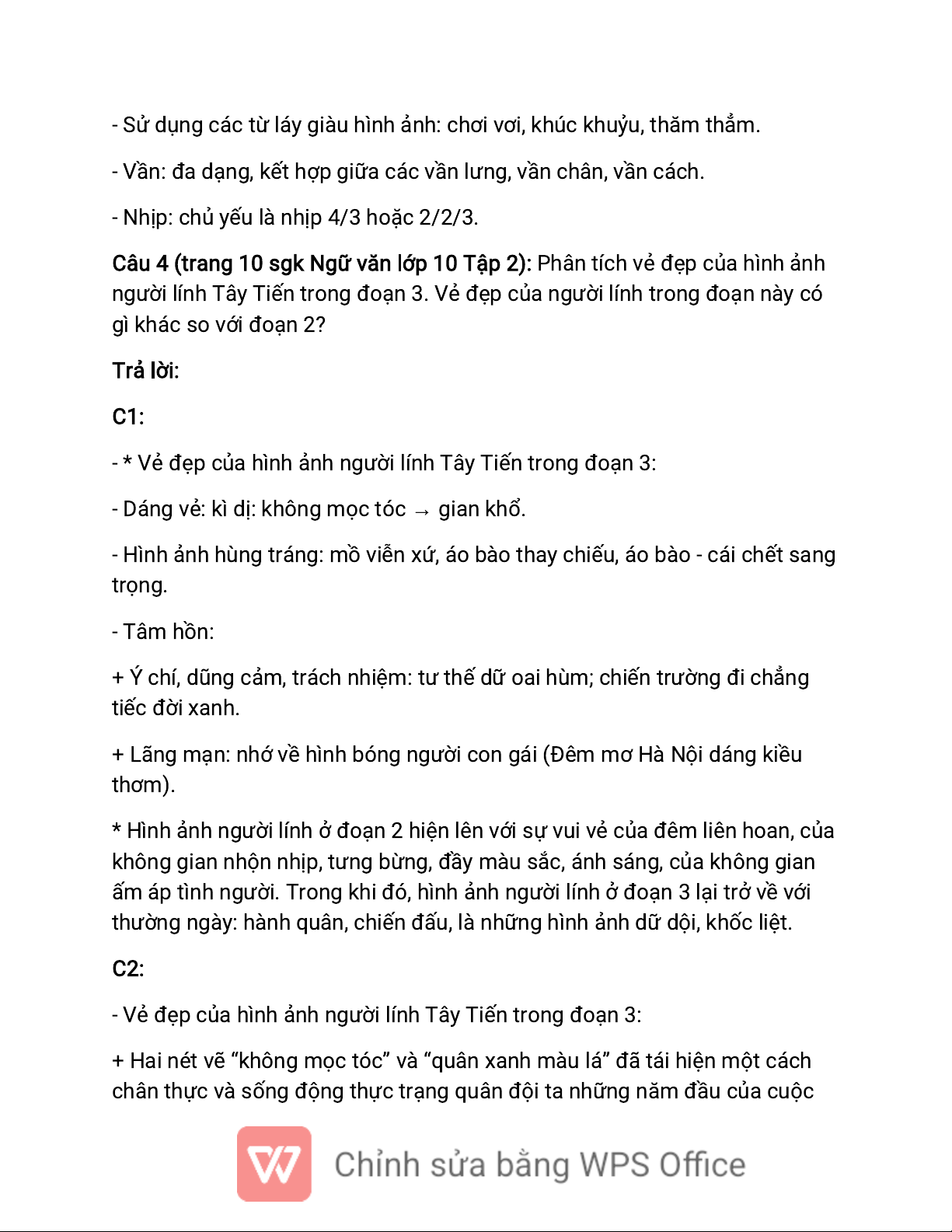 Câu 2 (trang 14 sgk Ngữ văn lớp 10 Tập 2): Tìm một vài hình ảnh trong văn
