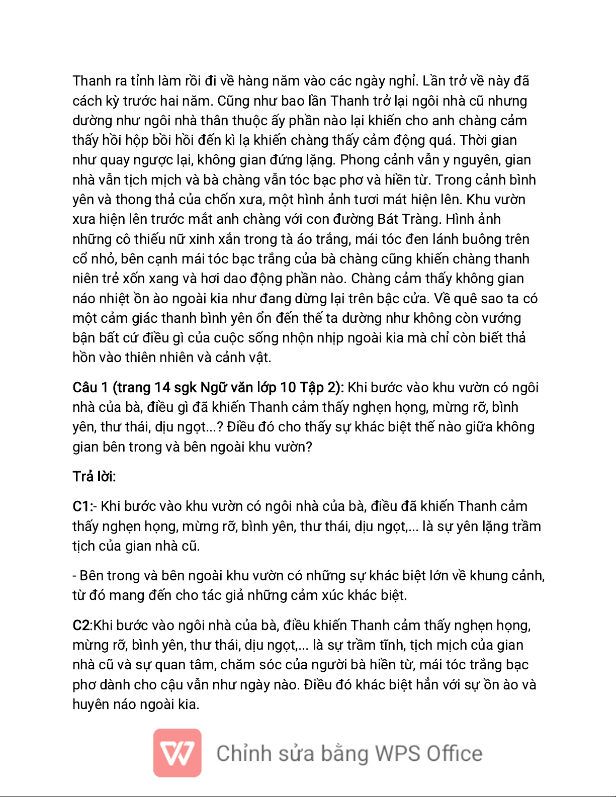 C1:- Khi bước vào khu vườn có ngôi nhà của bà, điều đã khiến Thanh cảm