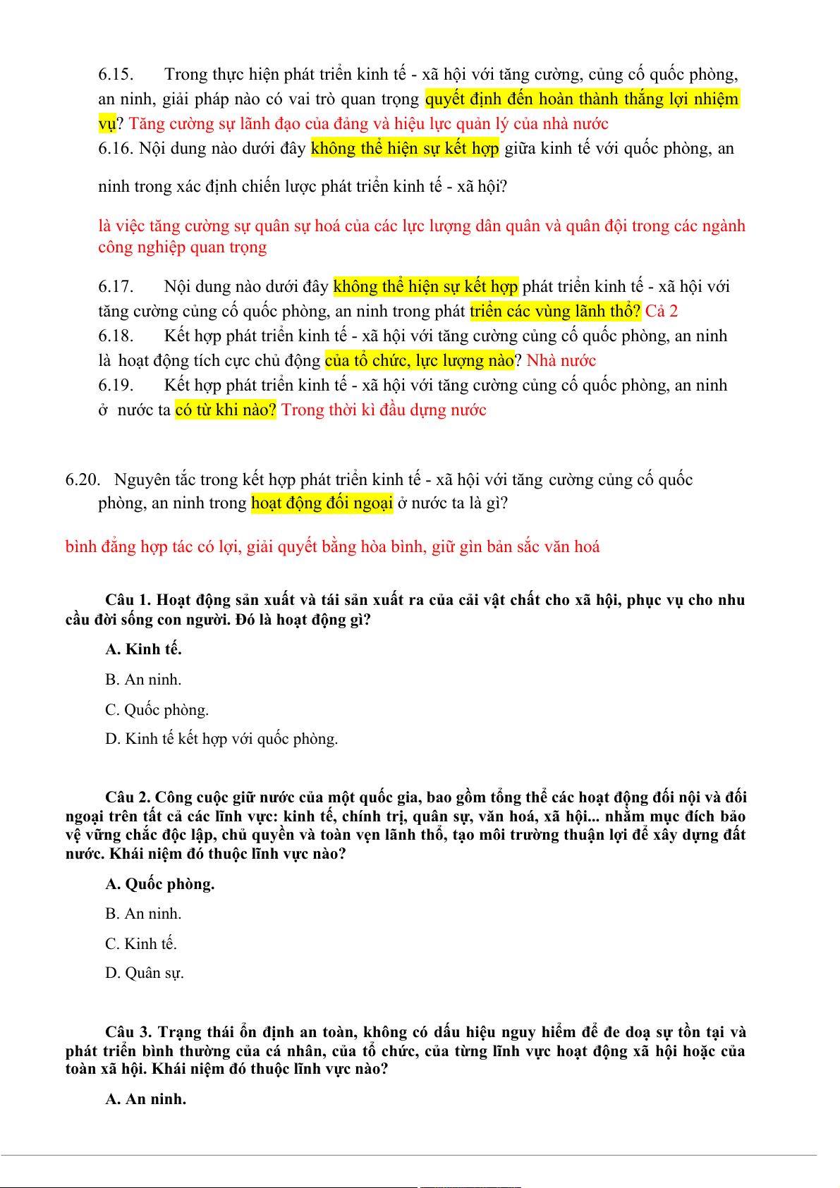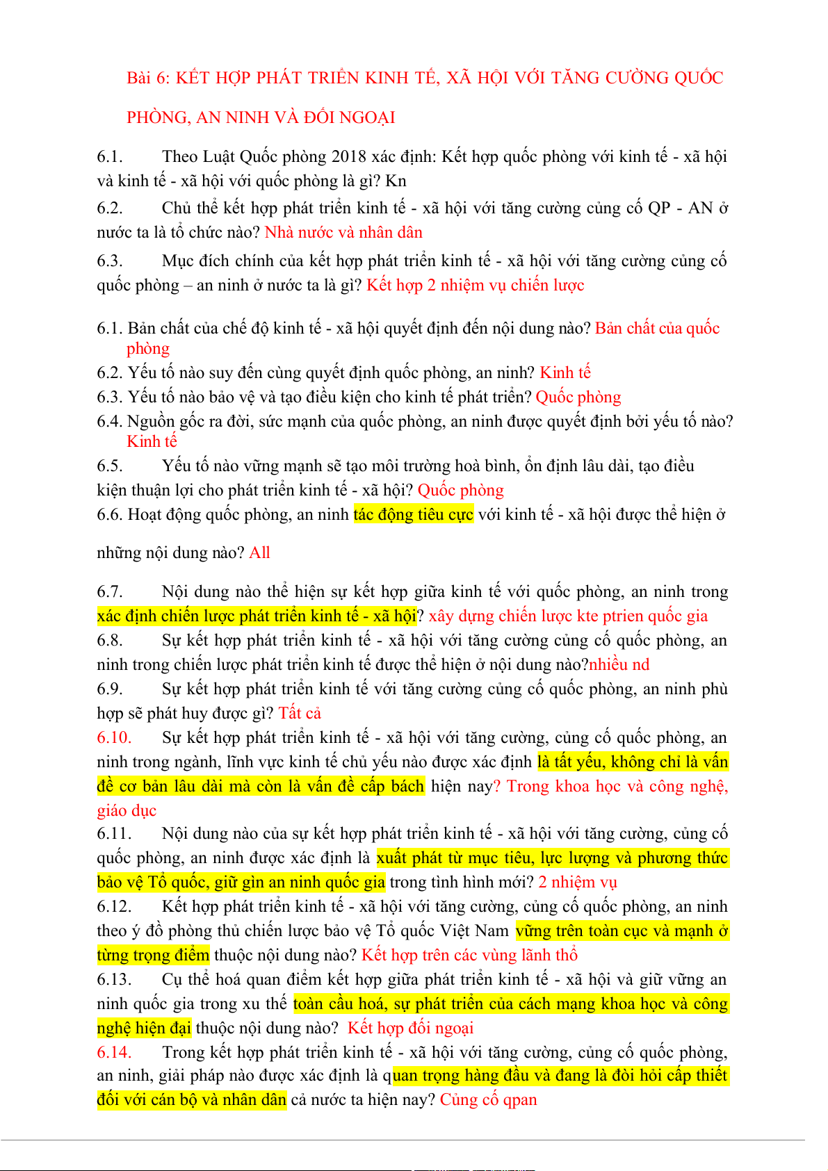 PHÒNG, AN NINH VÀ ĐỐI NGOẠI 6.1.