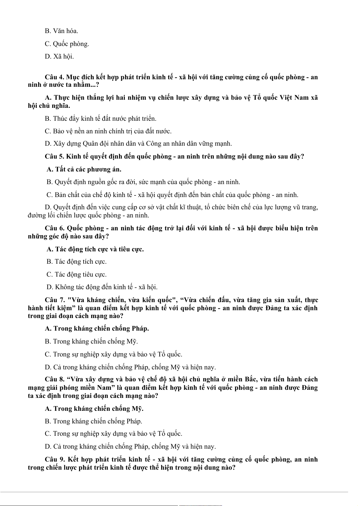Câu 4. Mục đích kết hợp phát triển kinh tế - xã hội với tăng cường củng cố quốc phòng - an