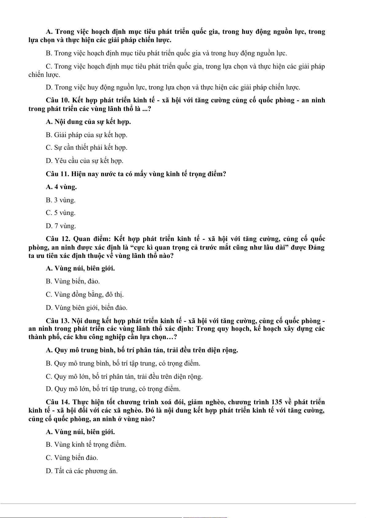 Câu 10. Kết hợp phát triển kinh tế - xã hội với tăng cường củng cố quốc phòng - an ninh