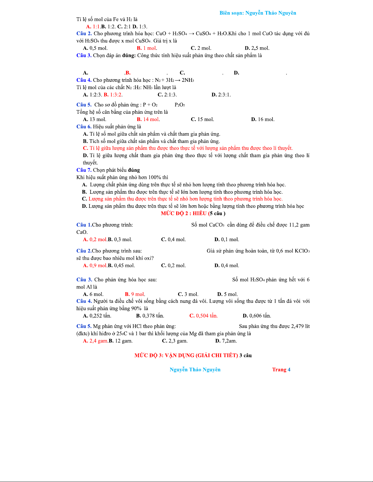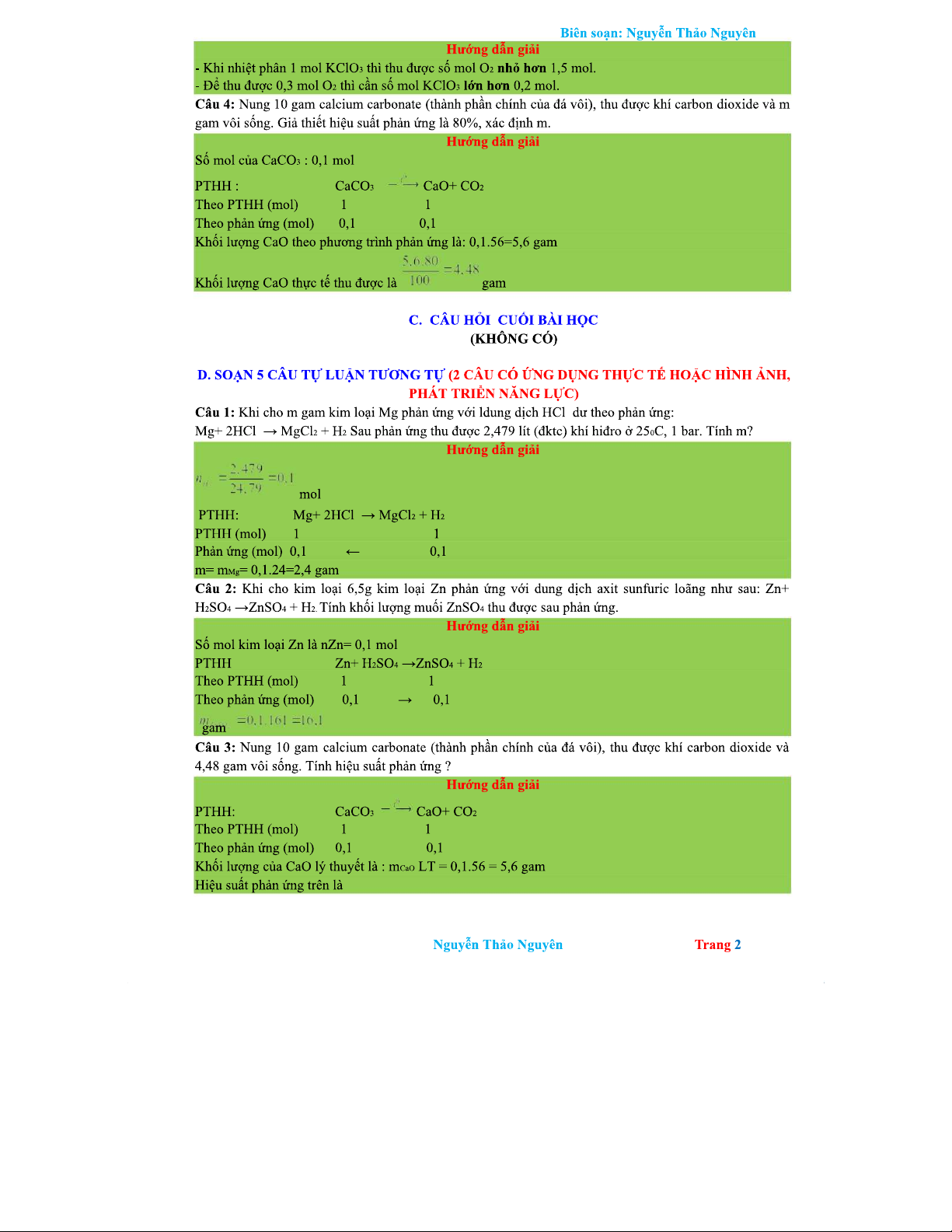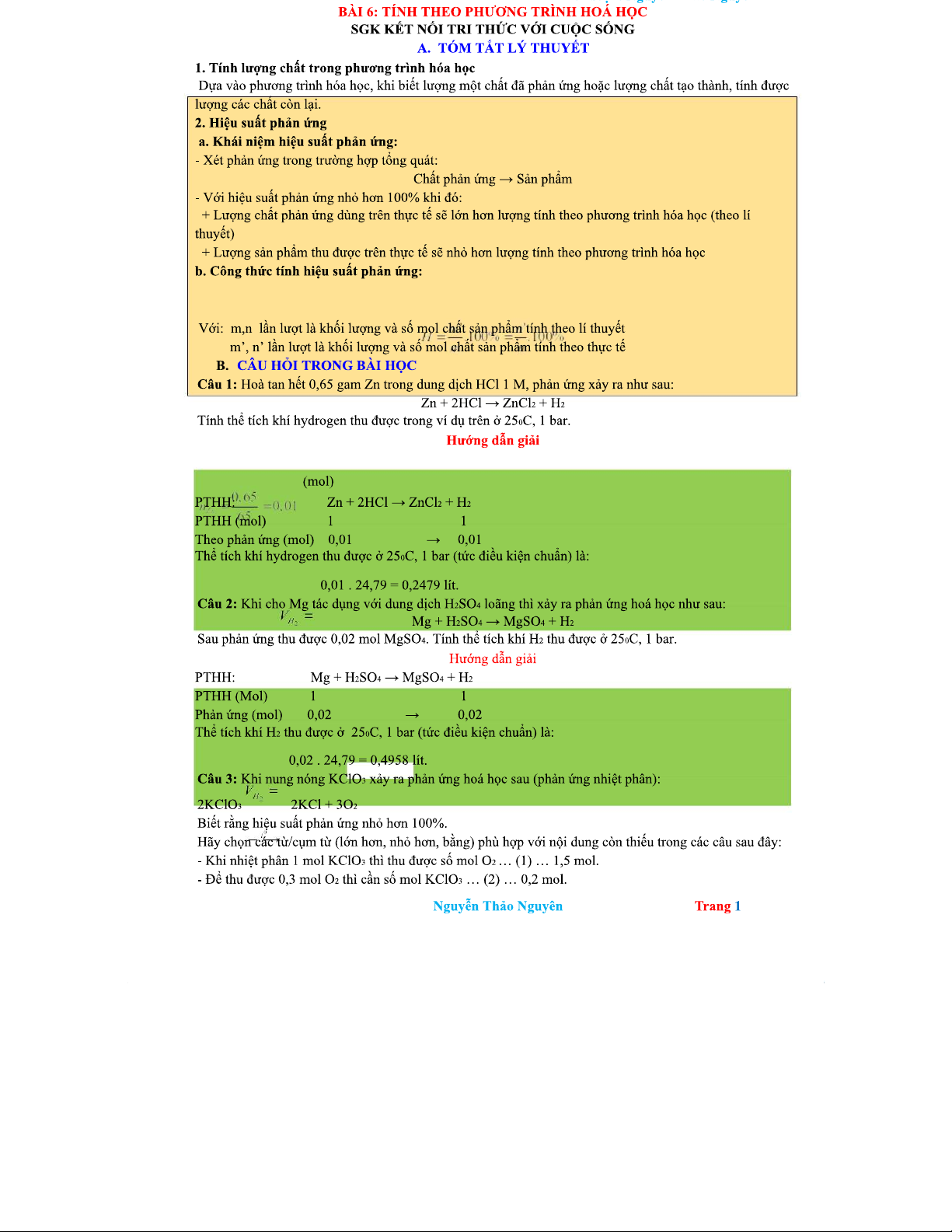 BÀI 6: TÍNH TOÁN TRONG PHƯƠNG TRÌNH HOÁ HỌC VÀ HIỆU SUẤT