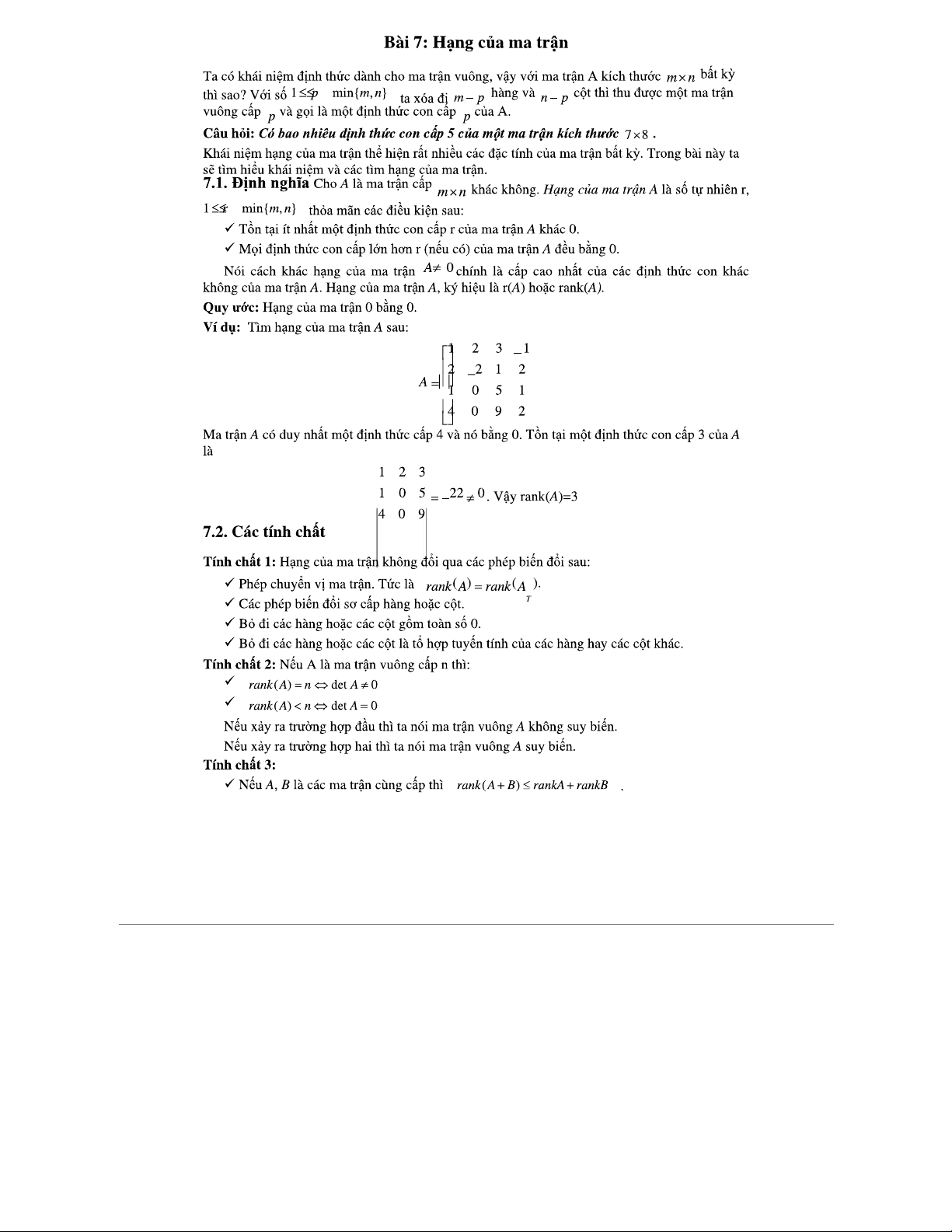 Bài 7 - Tìm hiểu về hạng của ma trận trong toán học