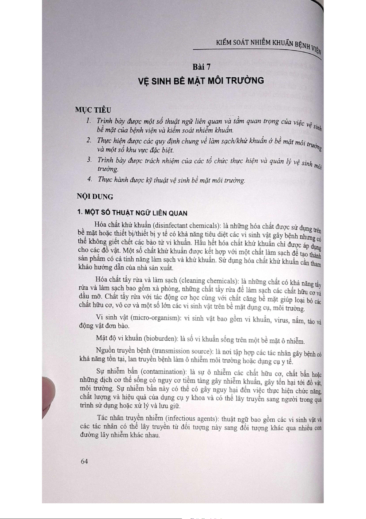 Bài 7: Vệ sinh bề mặt môi trường | Tài liệu Kiểm soát nhiễm khuẩn