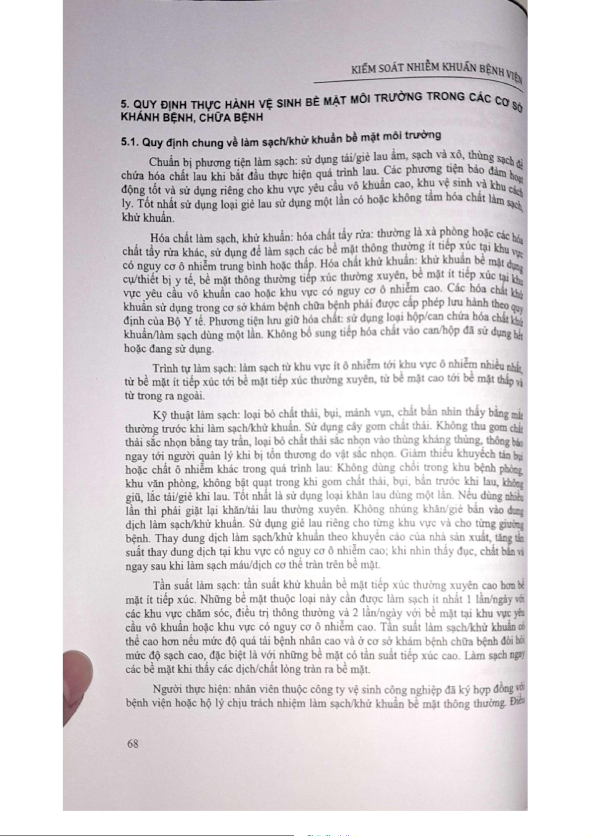 Trình bày được một số thuật ngữ liên quan và tầm quan trọng của việc vệ sinh bề mặt của bệnh viện và kiểm soát nhiễm khuẩn. Thực hiện được các quy định chung về làm sạch/khử khuẩn ở bề mặt môi trường và một số khu vực đặc biệt. Trình bày được trách nhiệm của các tổ chức thực hiện và quản lý vệ sinh môi trường. Tài liệu giúp bạn tham khảo, ôn tập và đạt kết quả cao. Mời đọc đón xem!