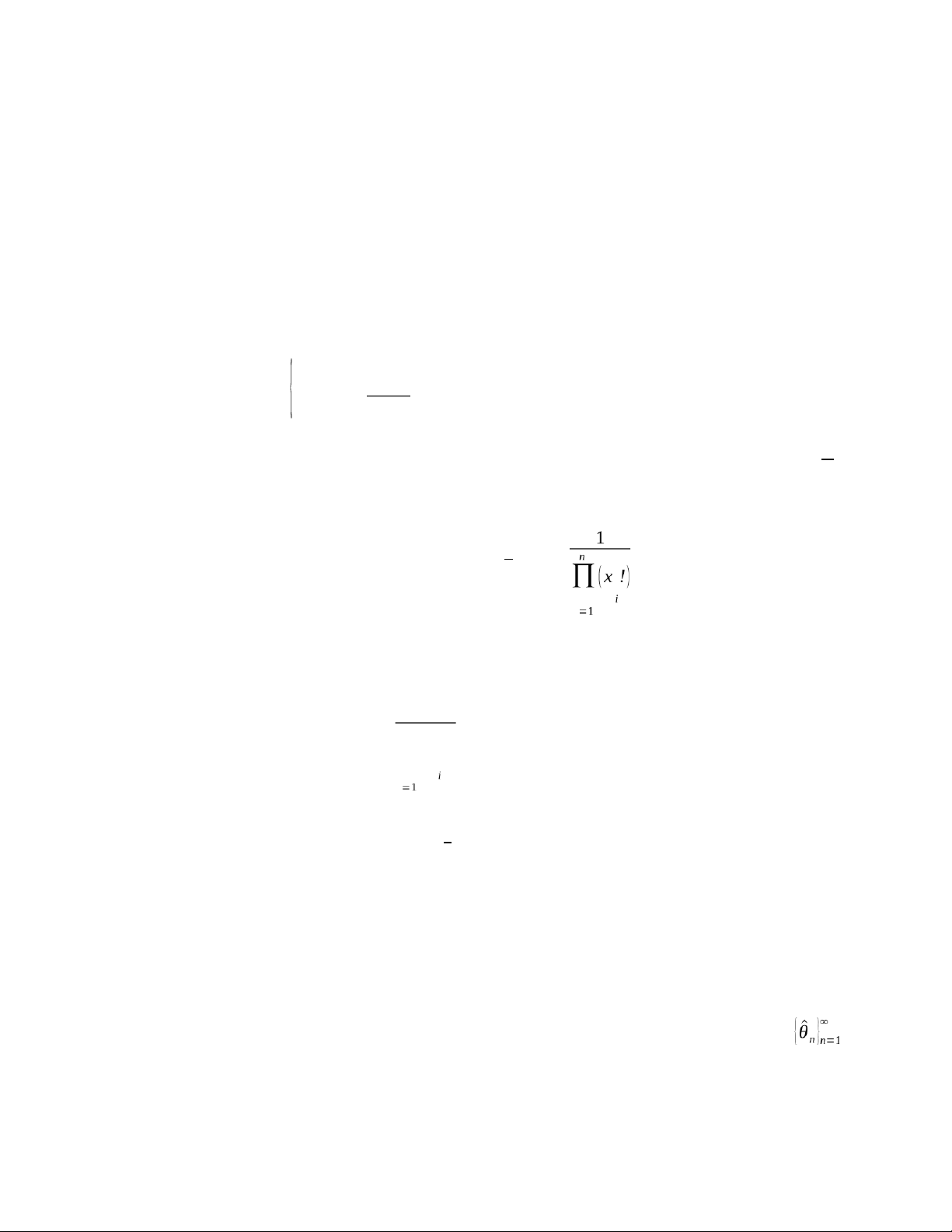 Ví dụ 8.2 Cho X1 , X2 ,…, Xn là mẫu từ biến ngẫu nhiên X, với phân phối có hàm mật độ −x f { ( x ;θ)= e