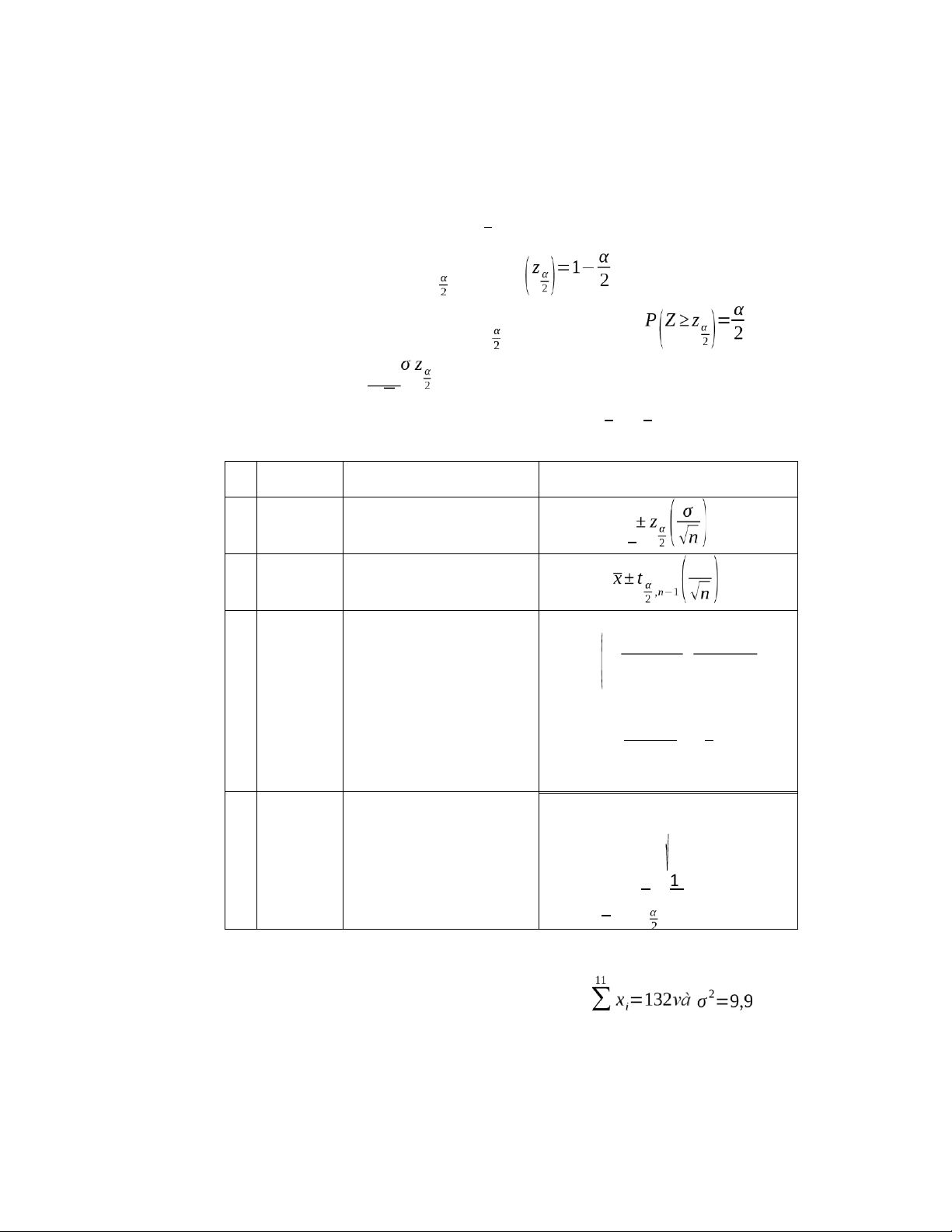 • Khoảng tin cậy cho giá trị trung bình μ, của phân phối chuần khi chưa biết phương sai.