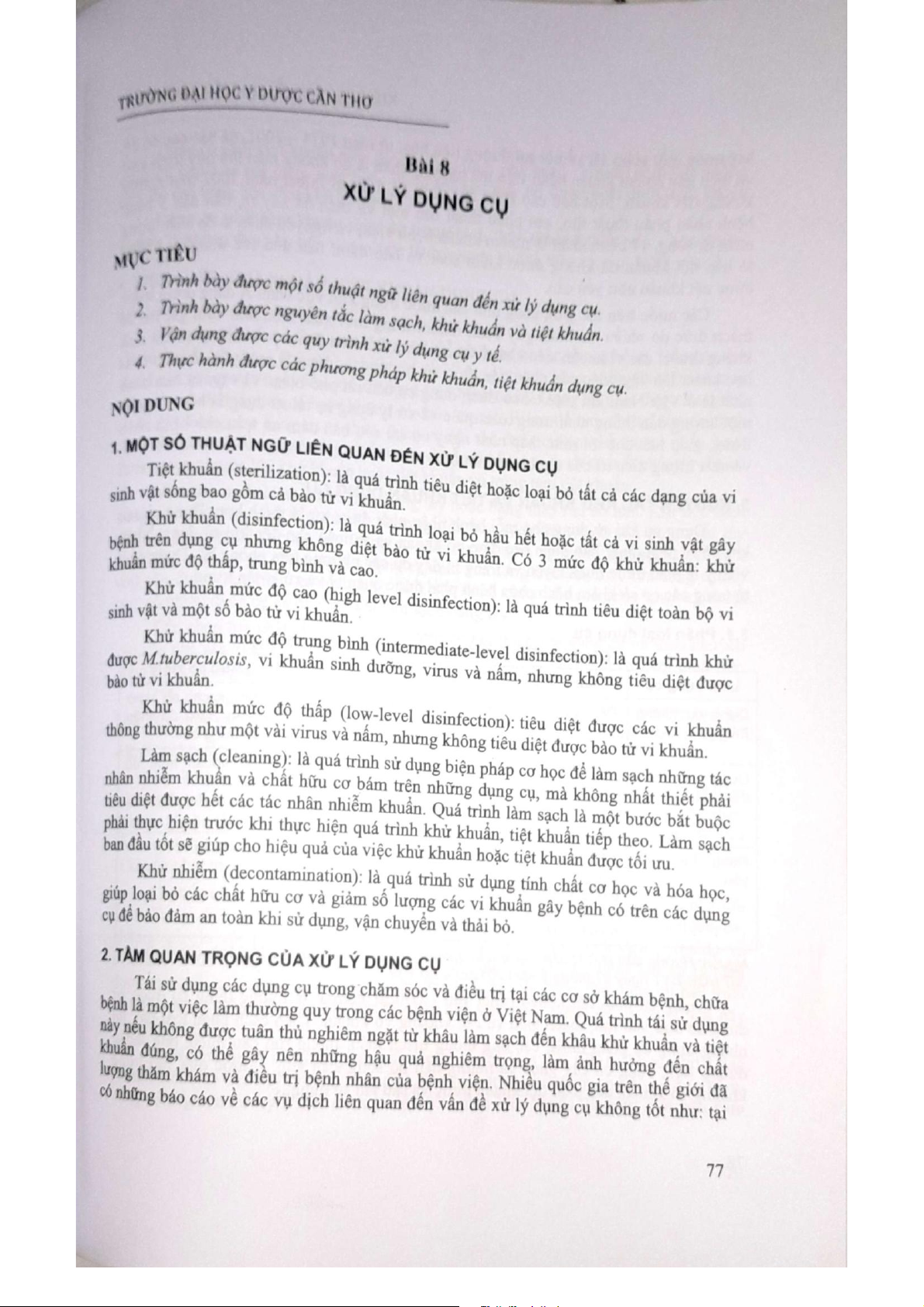Bài 8 - Quy Trình Xử Lý Dụng Cụ Y Tế | Tài liệu Kiểm Soát Nhiễm Khuẩn