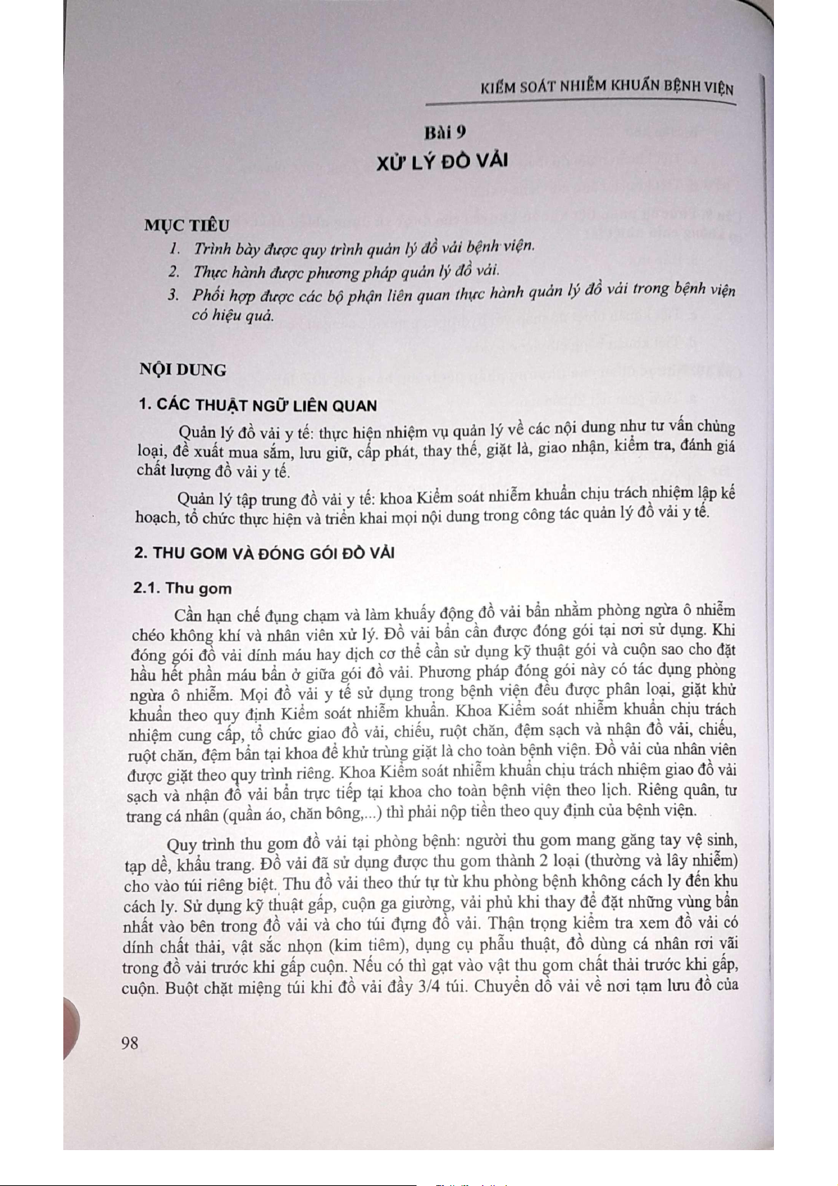 Bài 9 Xử lý đồ vải | Tài liệu Kiểm Soát Nhiễm Khuẩn