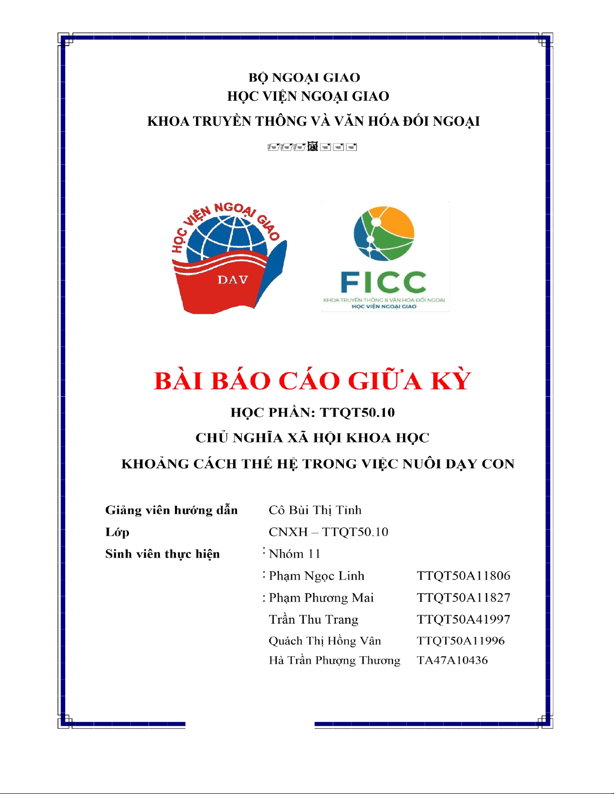 hình thực tế trên, nhóm em xin lựa chọn đề tài “Khoảng cách thế hệ trong việc nuôi dạy con cái trong gia đình” 1. Khái niệm