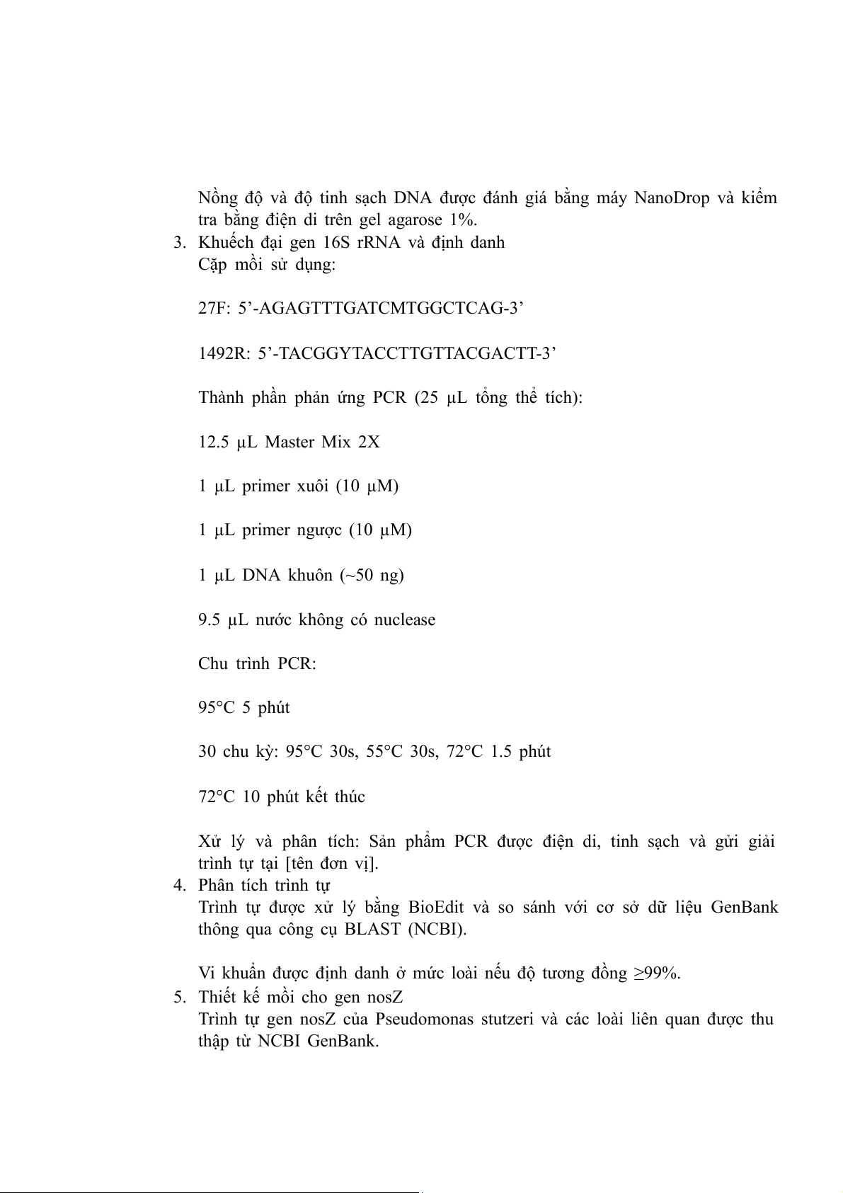 Pseudomonas dựa trên trình tự gen 16S rRNA, đồng thời thiết kế cặp mồi PCR đặc
