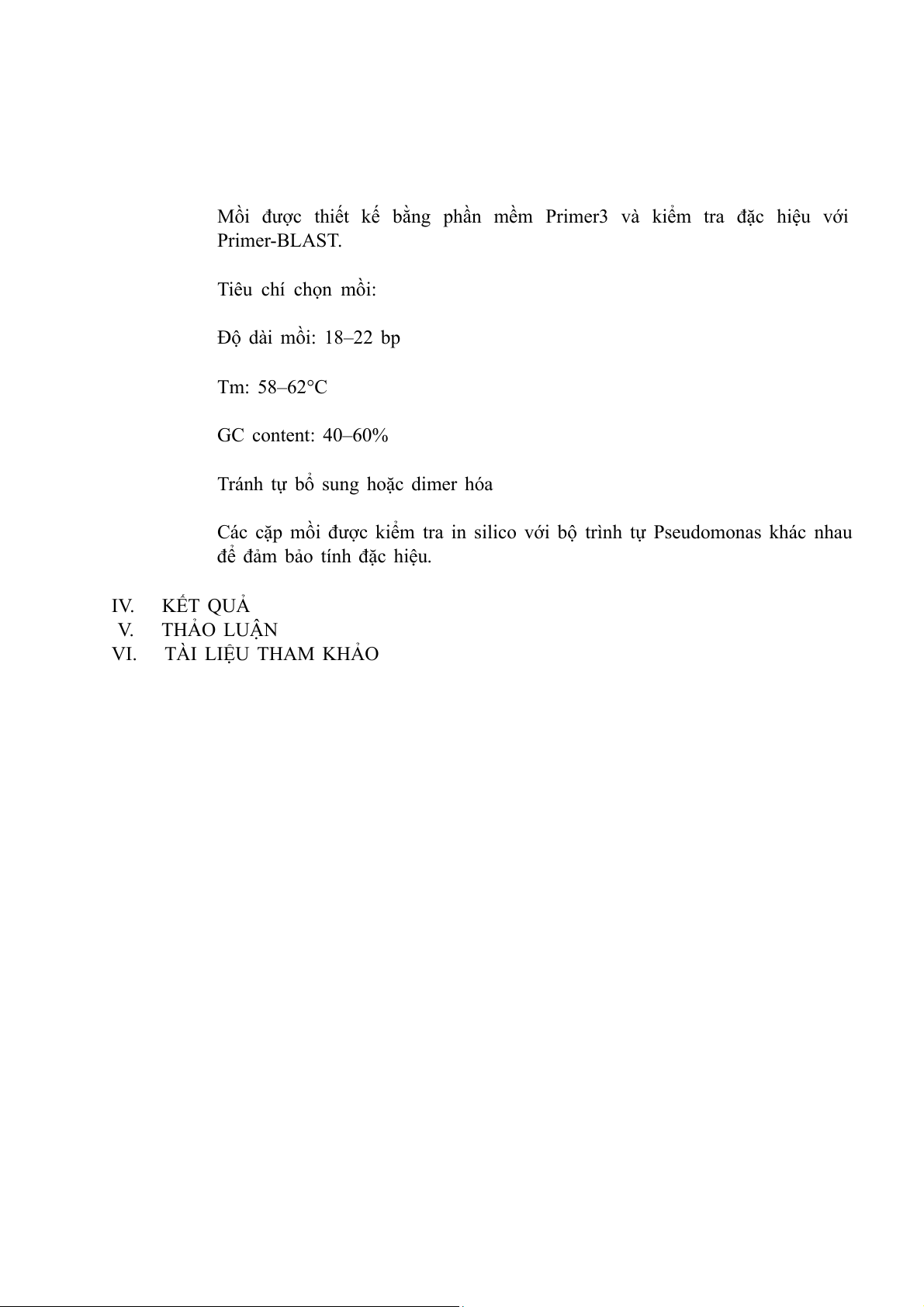 để đảm bảo tính đặc hiệu. IV. KẾT QUẢ V. THẢO LUẬN VI. TÀI LIỆU THAM KHẢO