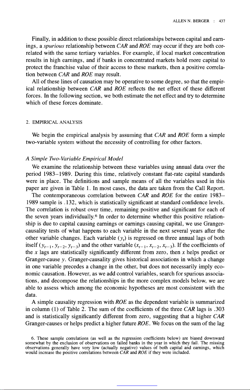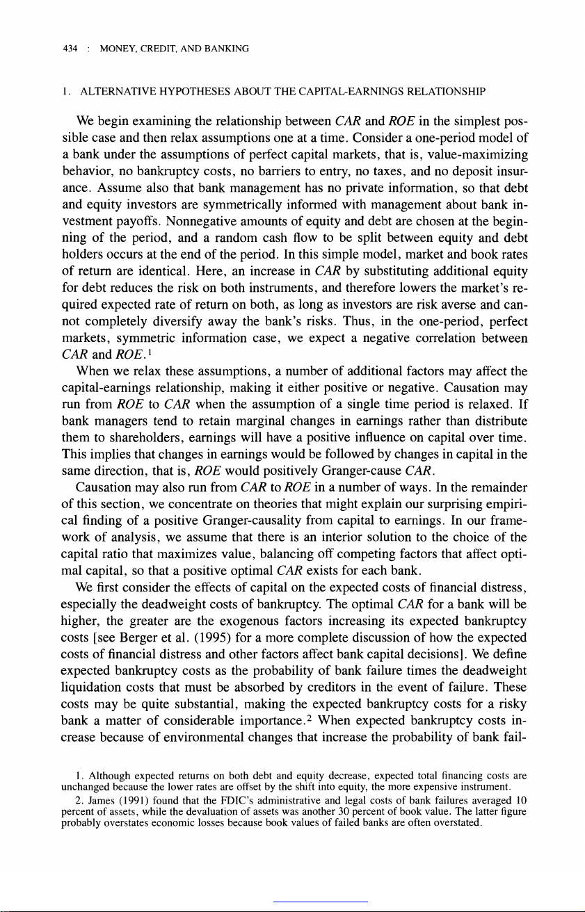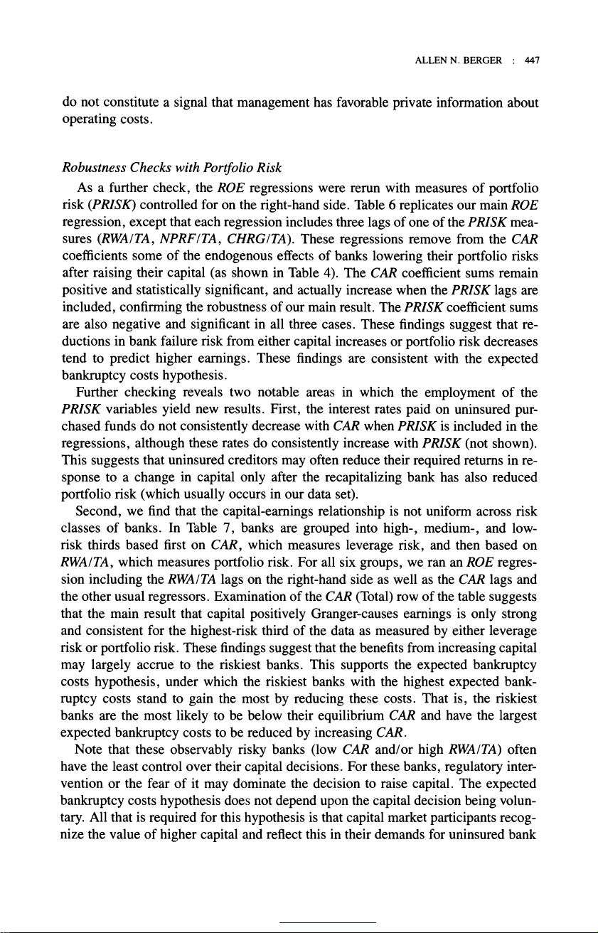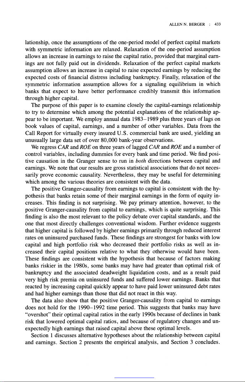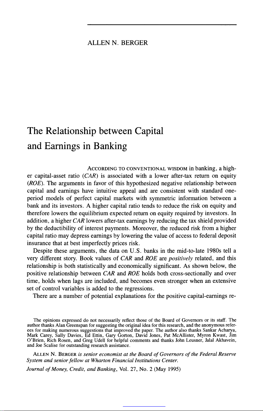 The Relationship between Capital and Earnings in Banking Author(s): Allen N. Berger