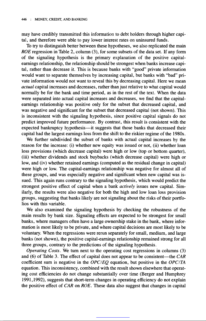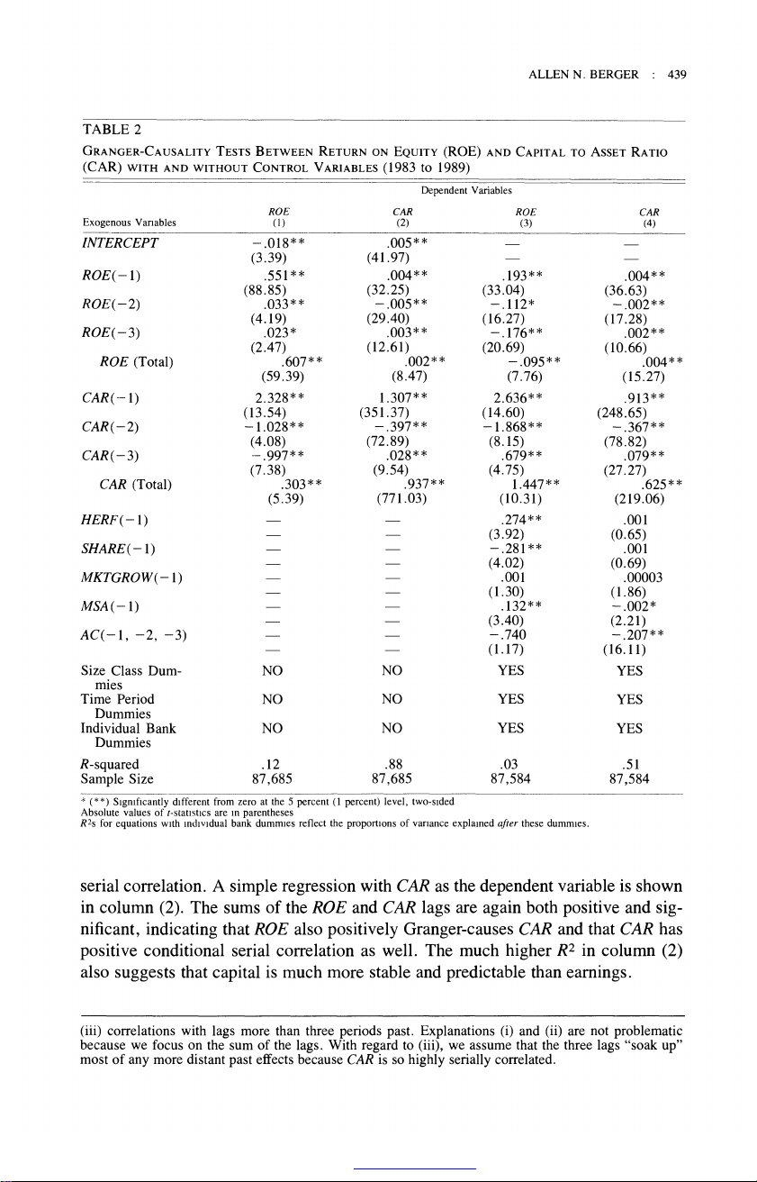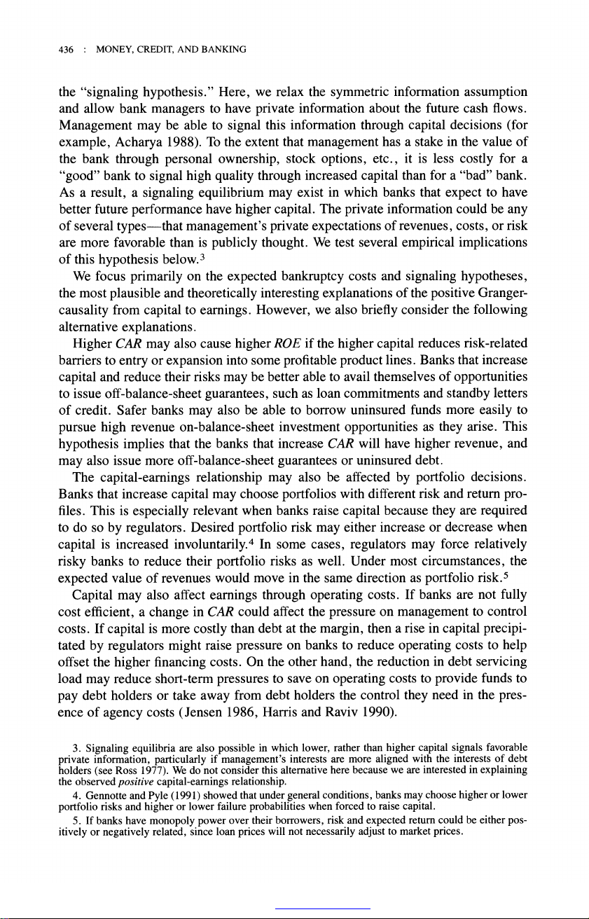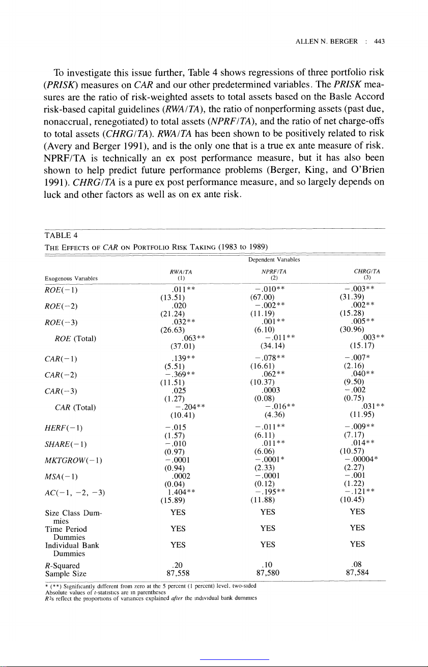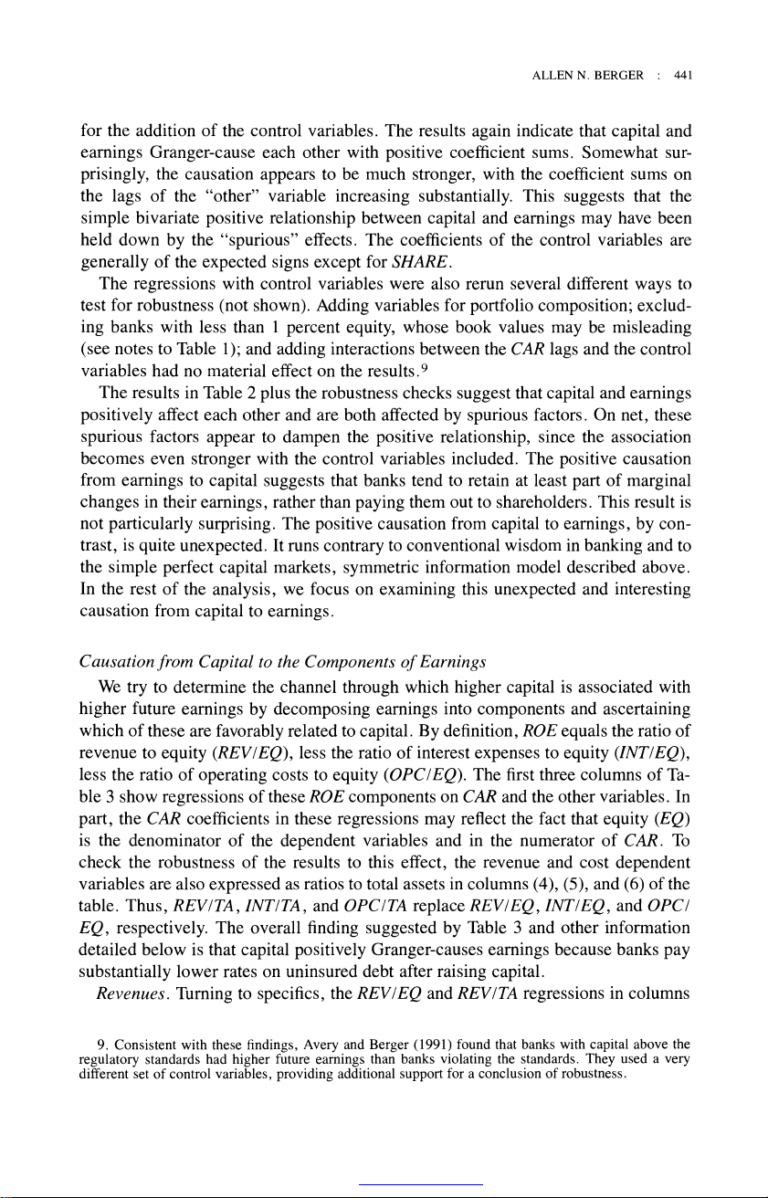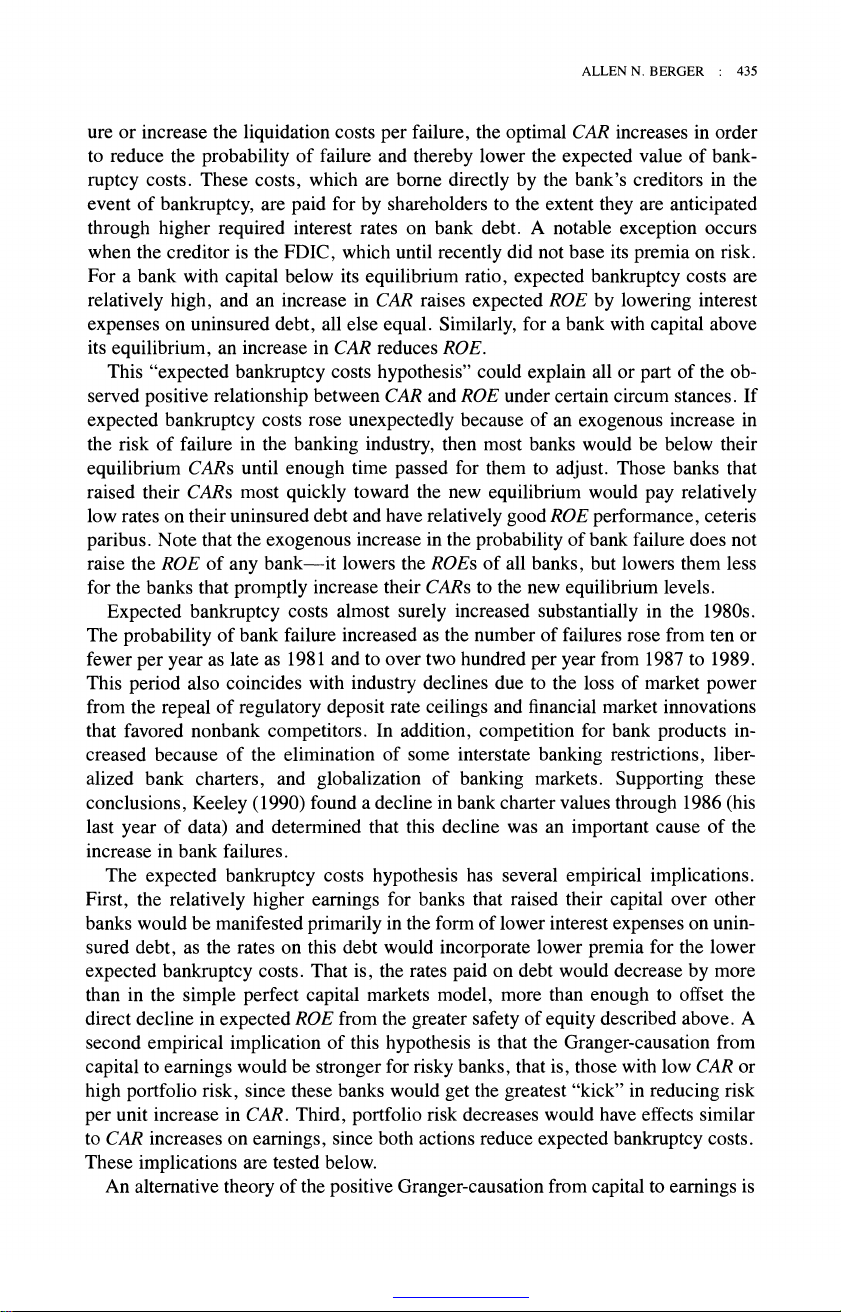 The Relationship between Capital and Earnings in Banking Author(s): Allen N. Berger